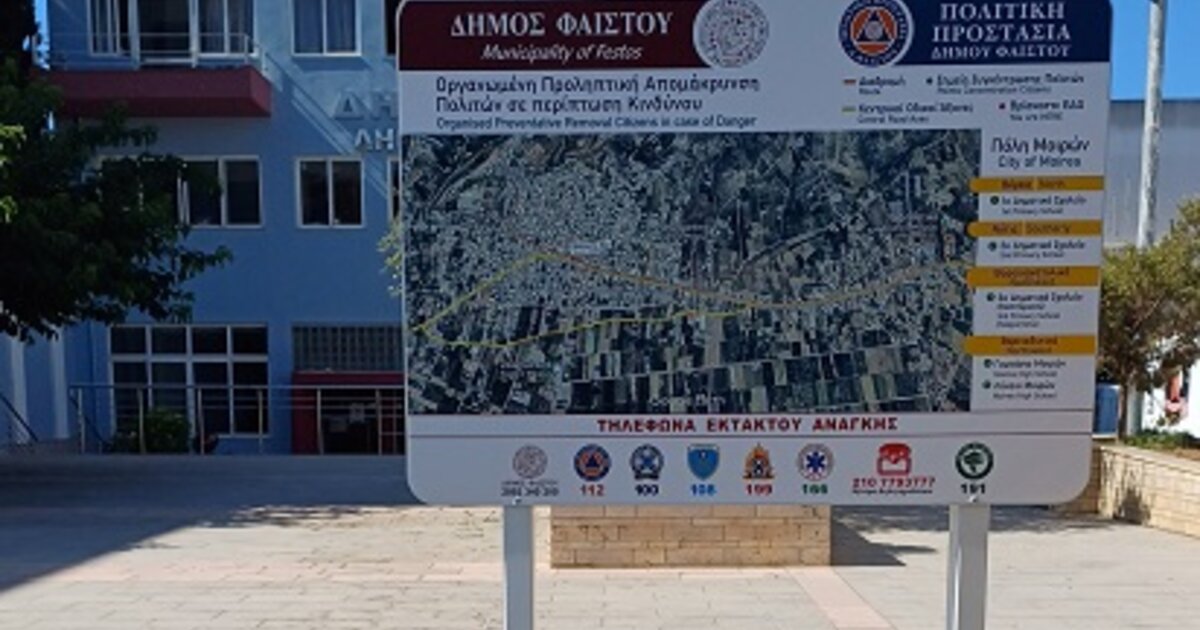 "Ακολουθώντας τις υποδείξεις του Σχεδίου «Ξενοκράτης», στο πλαίσιο του Τοπικού Σχεδίου Δράσης «Ιόλαος», ο Δήμος Φαιστού έχει καταρτίσει ολοκληρωμένα σχέδια δράσης για την ασφαλή απομάκρυνση των πολιτών και δημιουργήσει σημεία συγκέντρωσης σε περίπτωση κινδύνου ή έκτακτης κατάστασης. Η αποτύπωση του ολοκληρωμένου σχεδίου μάλιστα έχει γίνει επί χάρτου, ενώ ήδη έχουν τοποθετηθεί και στις τρεις δημοτικές ενότητες του Δήμου σχετικοί ενημερωτικοί πίνακες που παρέχουν όλες τις απαραίτητες