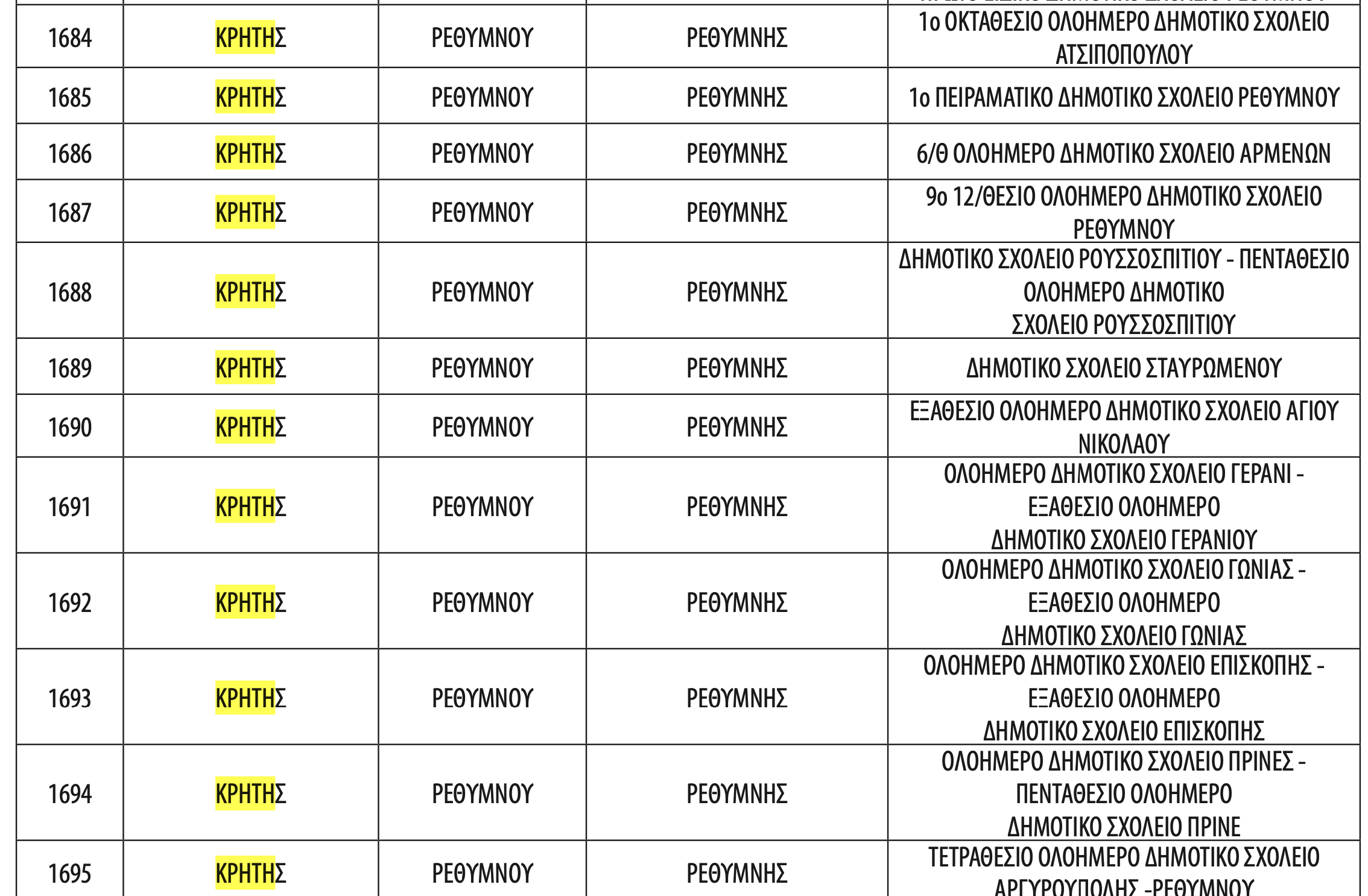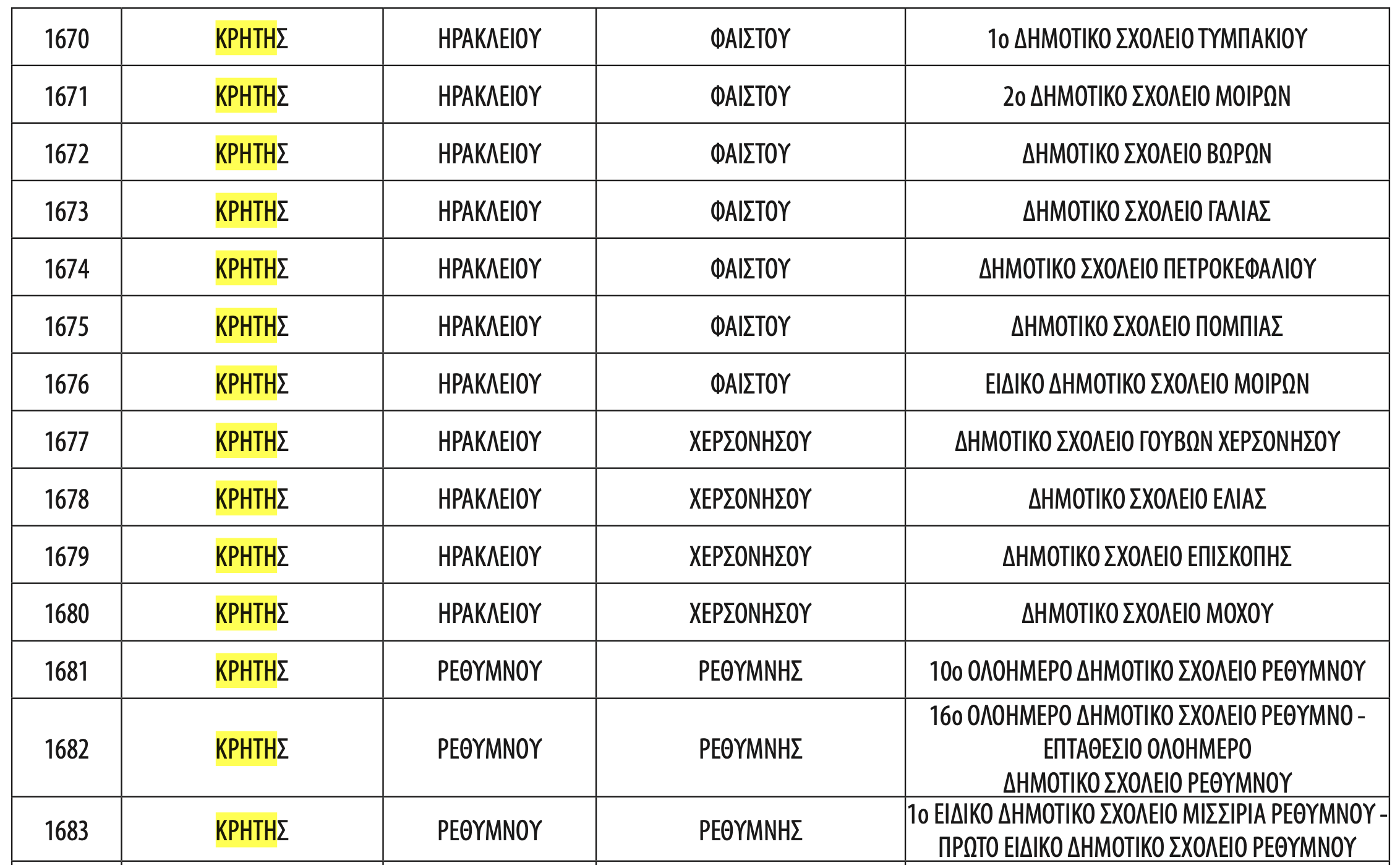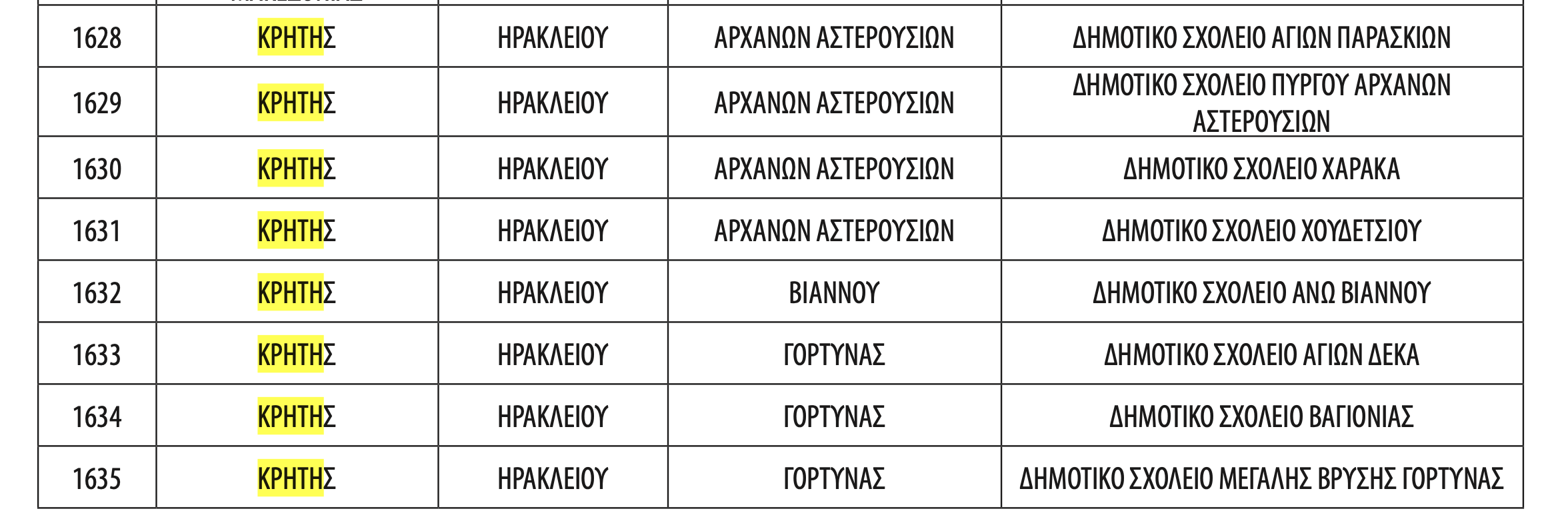 Σχολικά Γεύματα: Τα 80 Δημοτικά Σχολεία στην Κρήτη στα οποία θα υλοποιηθεί το πρόγραμμα