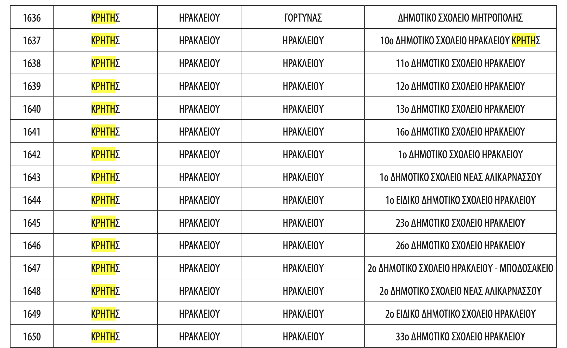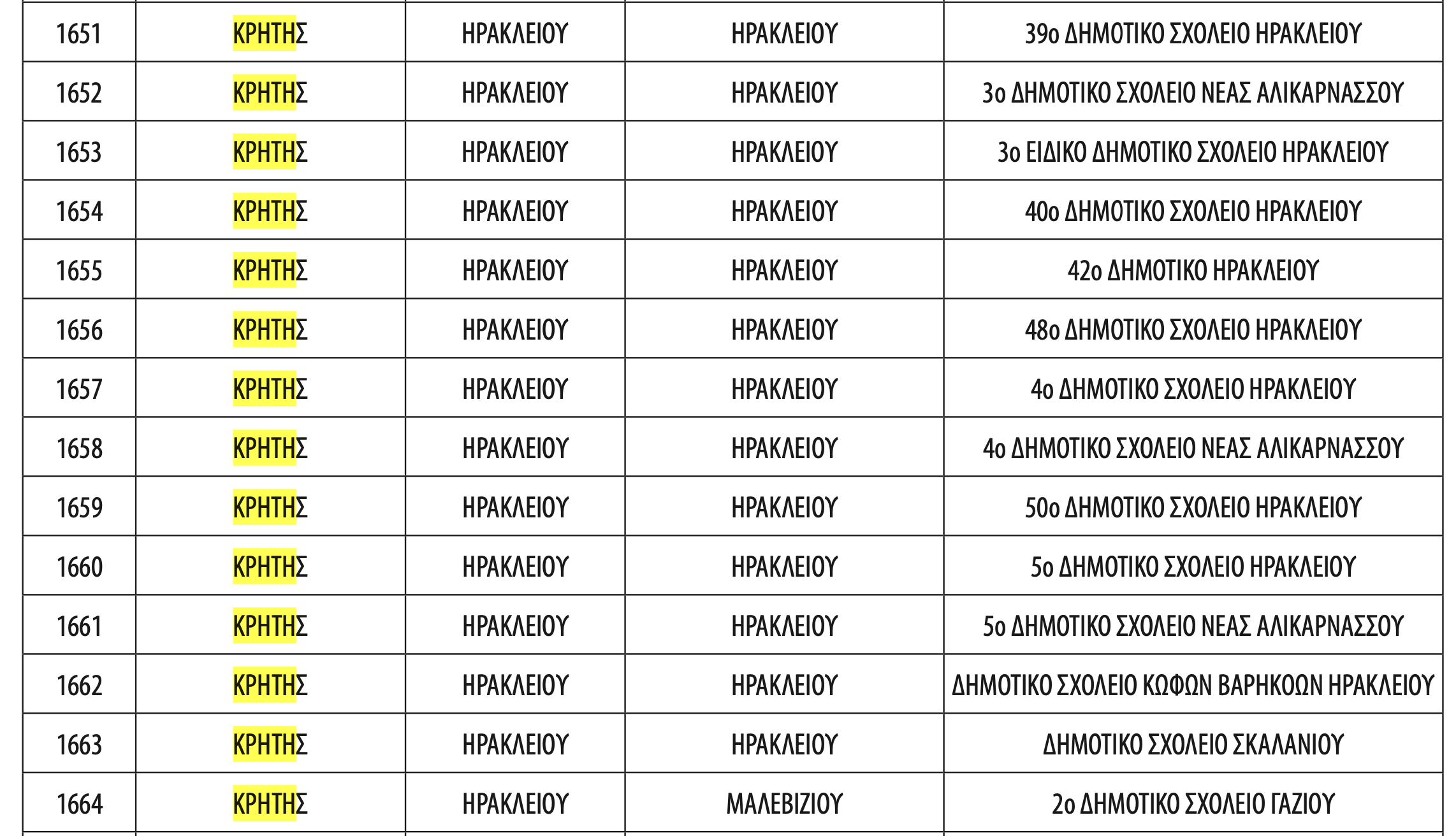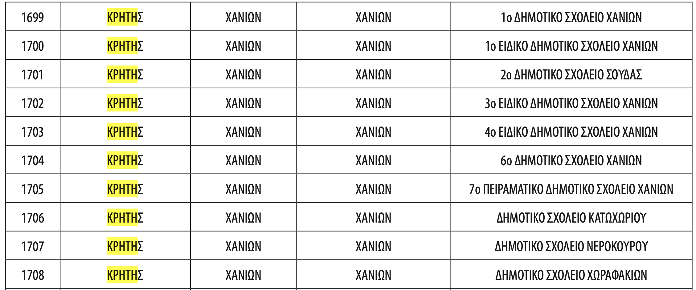 Σχολικά Γεύματα: Τα 80 Δημοτικά Σχολεία στην Κρήτη στα οποία θα υλοποιηθεί το πρόγραμμα
