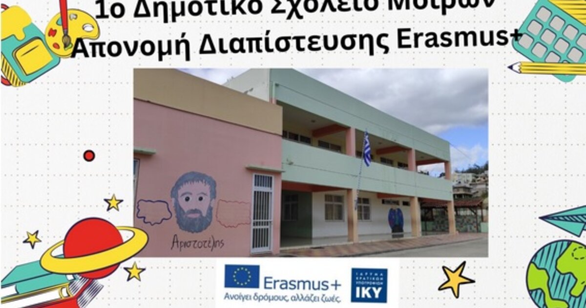 To Ίδρυμα Κρατικών Υποτροφιών, ως εθνική μονάδα Συντονισμού του Προγράμματος Erasmus+ για την Εκπαίδευση και την Κατάρτιση, απένειμε στο 1ο Δημοτικό Σχολείο Μοιρών τη Διαπίστευση στον τομέα της Σχολικής Εκπαίδευσης ΚΑ1/Erasmus+ 2024.