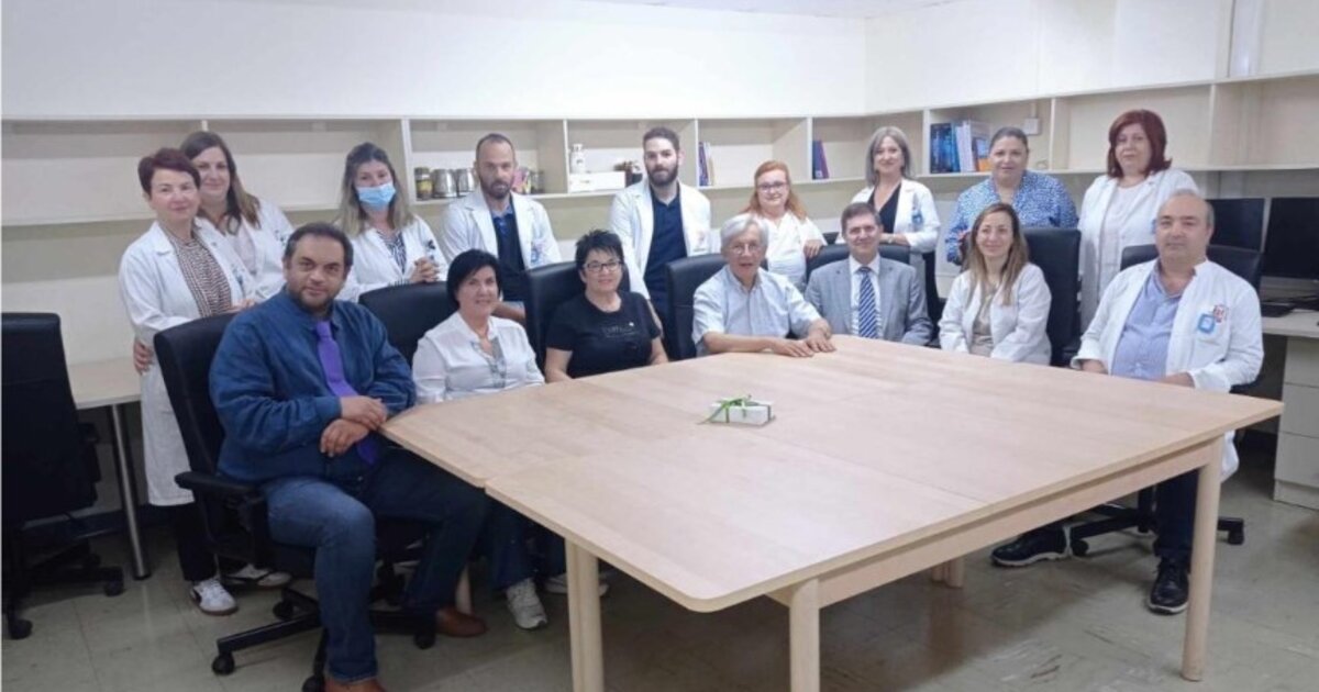 Κεντρική φωτογραφία: Από δεξιά προς τα αριστερά (Κάτω) κ. Στέφανος Κάχρης, Ακτινοθεραπευτής Ογκολόγος Διευθυντής ΕΣΥ-ΠΑΓΝΗ, κ. Μαρία Τόλια, Αν. Καθηγήτρια Ακτινοθεραπείας, Διευθύντρια Τμήματος Ακτινοθεραπευτικής Ογκολογίας-ΠΑΓΝΗ, κ. Εμμανουήλ Κεφαλογιάννης, Αναπληρωτής Καθηγητής ΘωρακοΚαρδιοχειρουργικής, Διευθυντής Μονάδας Χειρουργικής Θώρακος ΠΑΓΝΗ, τακτικό μέλος Ογκολογικού Συμβουλίου ΠΑΓΝΗ, κ. Γεώργιος Χαλκιαδάκης, Διοικητής ΠΑΓΝΗ, Καθηγητής Χειρουργικής, κ. Λίτσα Χριστοδουλάκη, Ιδρυτική Πρόεδρος του Ροταριανού Ομίλου El Greco – τ. Βοηθός Διοικητής Κρήτης της 2475 Περιφέρειας Διεθνούς Ρόταρυ και Πρόεδρος Αντικαρκινικής Εταιρείας παραρτήματος Ηρακλείου Κρήτης, κ. Μαρία Λατσούδη-Κανάκη, Μέλος Ροταριανού Ομίλου El Greco, κ. Στυλιανός Κτενιαδάκης, Αν. Διοικητής ΠΑΓΝΗ (Επάνω)κ. Άννα Μεσσαριτάκη Τεχνολόγος Ακτινοθεραπείας ΠΑΓΝΗ, κ. Αναστασία Φασουλάκη, Ακτινοθεραπευτής Ογκολόγος, Επιμ. Α’ ΕΣΥ-ΠΑΓΝΗ, κ. Γωγώ Αργυρίου, Τεχνολόγος Ακτινοθεραπείας ΠΑΓΝΗ, κ. Ευαγγελία Εζανίδου, Τεχνολόγος Ακτινοθεραπείας ΠΑΓΝΗ, κ. Χαράλαμπος Φωτσιτζούδης, ειδ. Ιατρός Παθολογικής Ογκολογίας ΠΑΓΝΗ, κ. Αντώνιος Βαρβέρης, Ακτινοθεραπευτής Ογκολόγος, Επιμ. Β’ ΕΣΥ-ΠΑΓΝΗ, κ. Αικατερίνη Ζηδιανάκη, χειριστής ιατρικών μηχανημάτων Τμήμα Ακτινοθεραπείας ΠΑΓΝΗ, κ. Αικατερίνη Τζουλιαδάκη Τεχνολόγος Ακτινοθεραπείας ΠΑΓΝΗ και κ. Βασιλική Σανδάλου, χειριστής ιατρικών μηχανημάτων Τμήμα Ακτινοθεραπείας ΠΑΓΝΗ. Η γραμματέας του Διοικητή ΠΑΓΝΗ κ. Λιοπυράκη Νίκη, επιμελήθηκε η λήψη της φωτογραφίας, παράδοσης της δωρεάς.