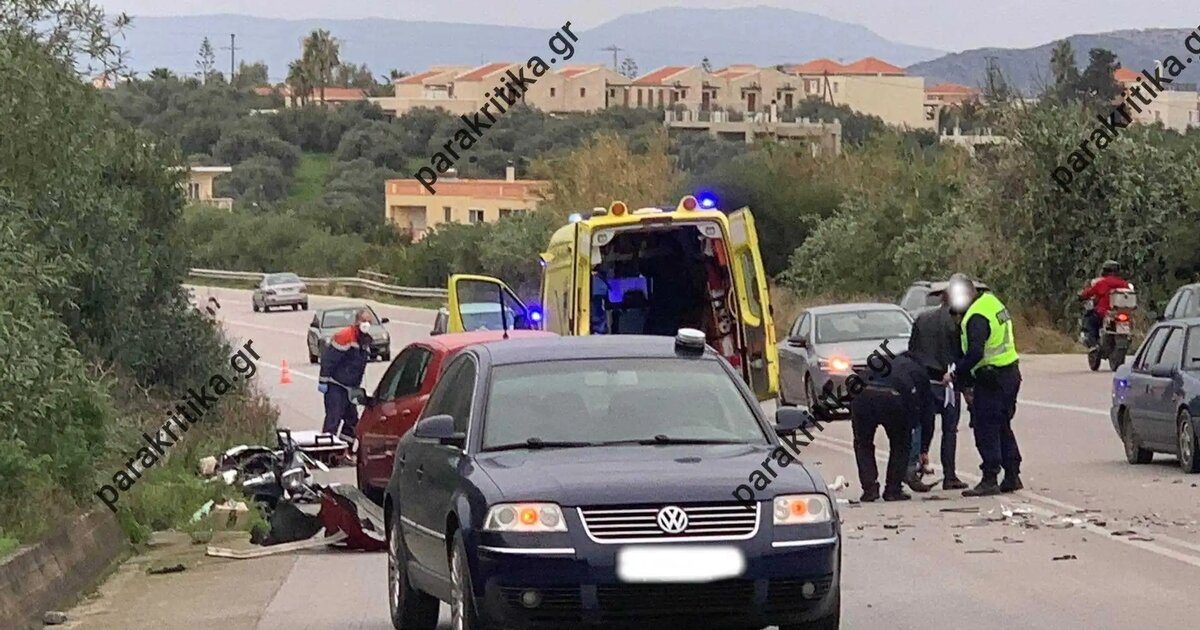 Σοβαρό τροχαίο στα Χανιά - Σύγκρουση αυτοκινήτου με μοτοσικλέτα