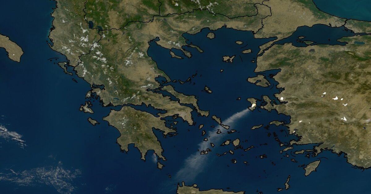 Μάλιστα ο καπνός έχει φθάσει στα 400 χιλιόμετρα νοτιοδυτικά της Χίου.