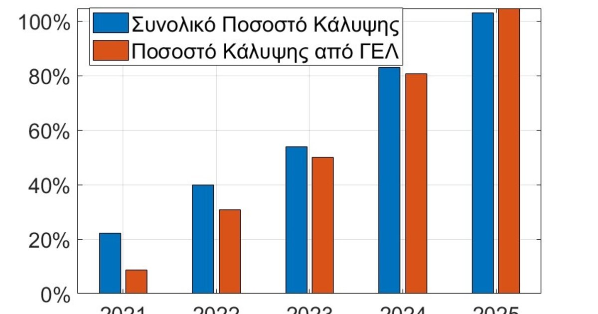Σχήμα 1. Το Ποσοστό κάλυψης των θέσεων του Τμήματος από το 2021 μέχρι και το 2025.