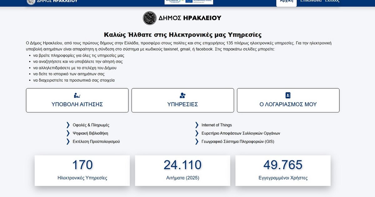 Στη διάθεση των δημοτών 120 επιπλέον υπηρεσίες, ηλεκτρονικά, μέσω της αναβαθμισμένης πλατφόρμας του Δήμου Ηρακλείου