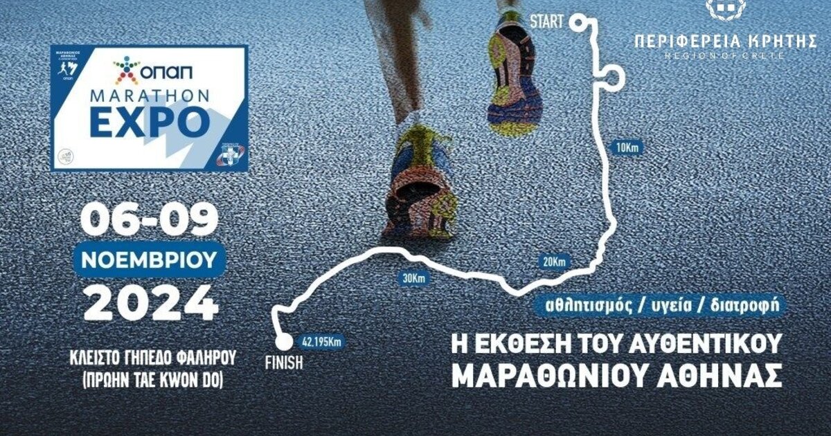 Στη μεγαλύτερη έκθεση αθλητισμού που διεξάγεται στη χώρα, τη Διεθνή Έκθεση ΟΠΑΠ MARATHON Expo που γίνεται 6-9 Νοεμβρίου 2024 στο κλειστό γήπεδο Φαλήρου στον Πειραιά, συμμετέχει η Περιφέρεια Κρήτης με σημαντικές δρομικές διοργανώσεις της Κρήτης.