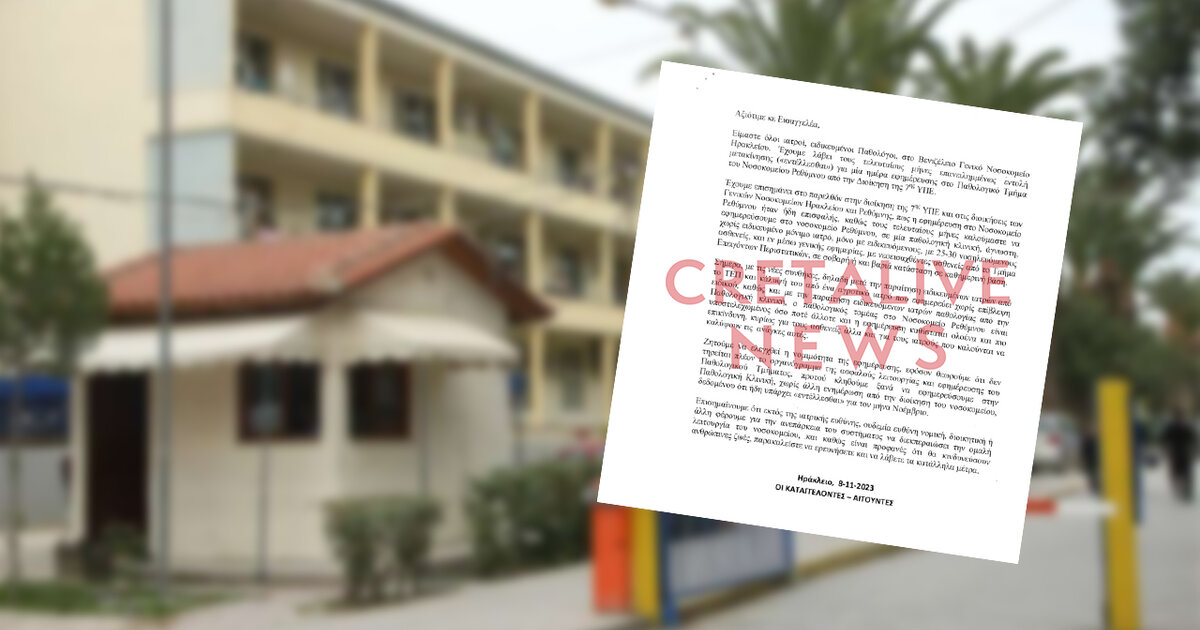 Να σημειωθεί ότι η καταγγελία κοινοποιήθηκε επίσης στο Υπουργείο Υγείας, την Περιφέρεια Κρήτης, την Διοίκηση της 7ης ΥΠΕ Κρητης και τις διοικήσεις των δύο νοσοκομείων.