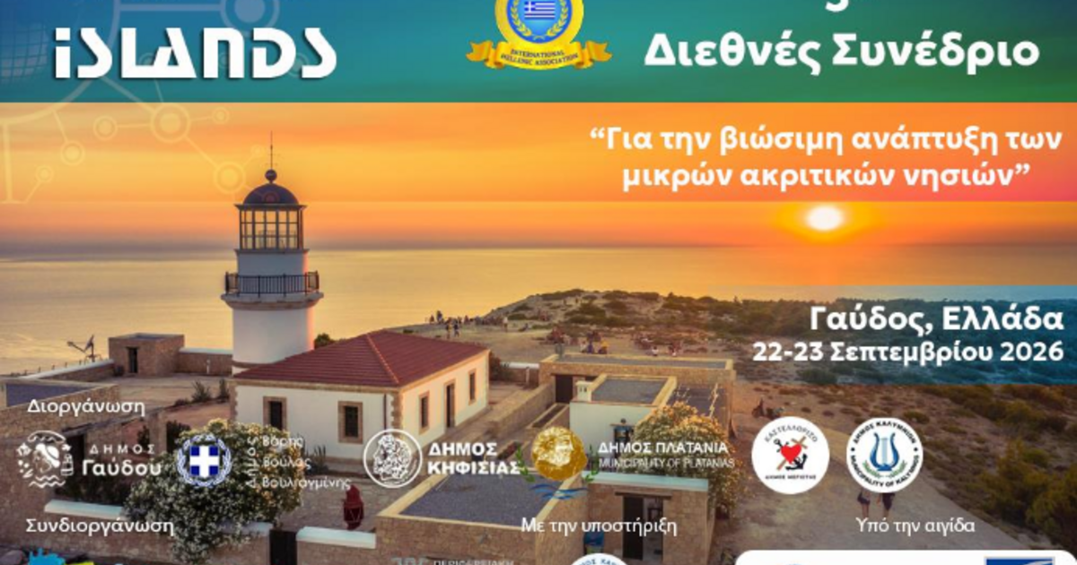 Μετά τις πετυχημένες διοργανώσεις Διεθνών Συνεδρίων «Smart Islands» στην Ψέριμο το 2024 και στο Καστελλόριζο το 2025, φέτος το 3ο Διεθνές Συνέδριο, που συνδιοργανώνεται από τον International Hellenic Association (IHA) σε συνεργασία με τους Δήμους Γαύδου, Βάρης Βούλας Βουλιαγμένης, Καλυμνίων, Κηφισιάς, Μεγίστης και την Περιφερειακή Ένωση Δήμων Κρήτης, θα πραγματοποιηθεί στη Γαύδο, στις 22 και 23 Σεπτεμβρίου 2026.