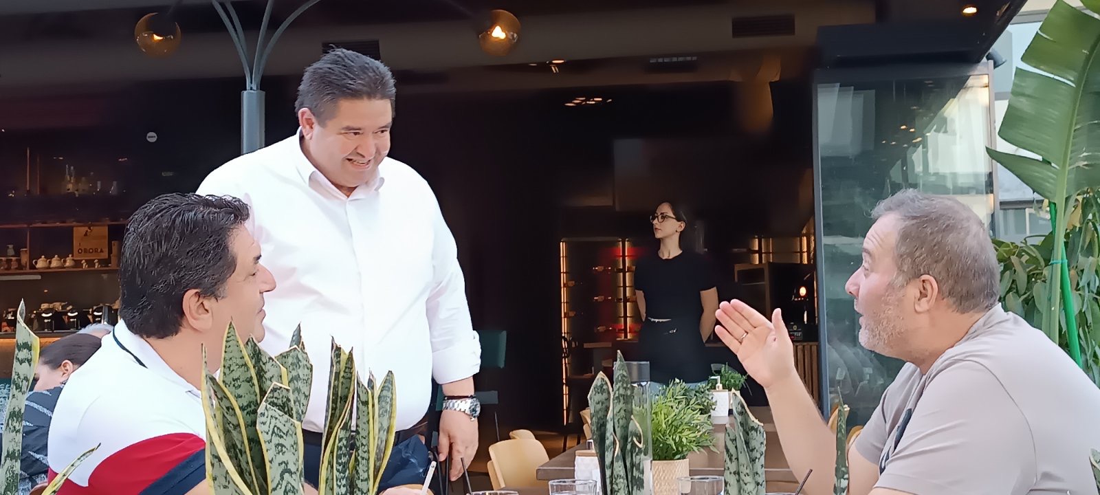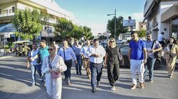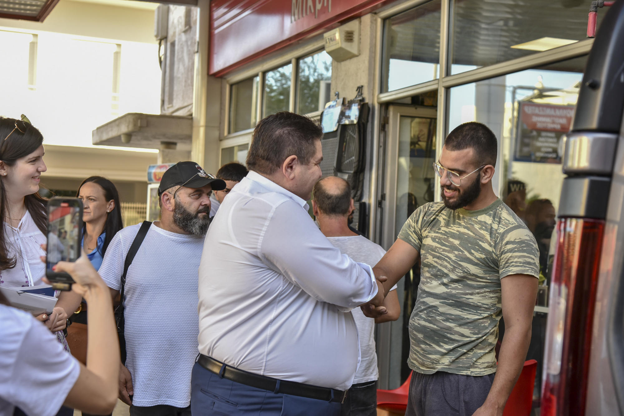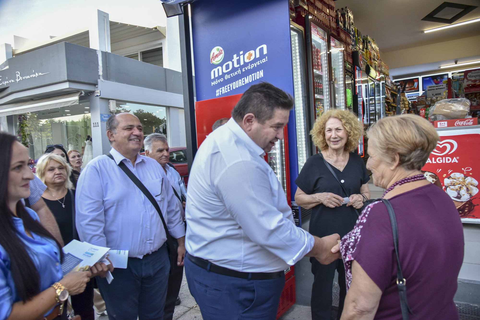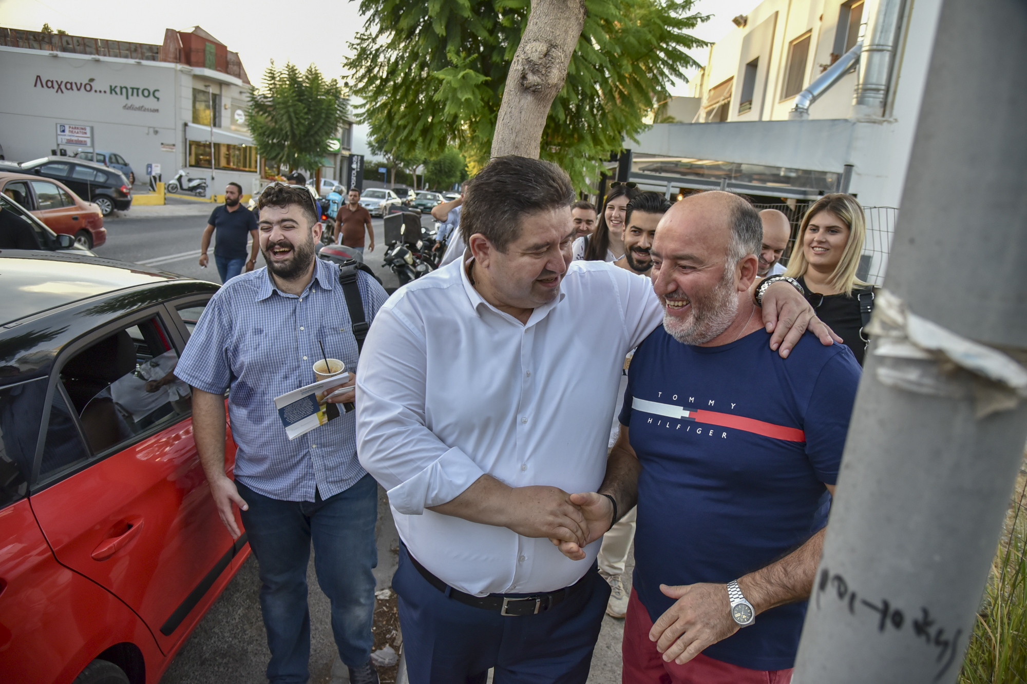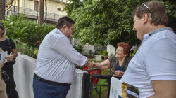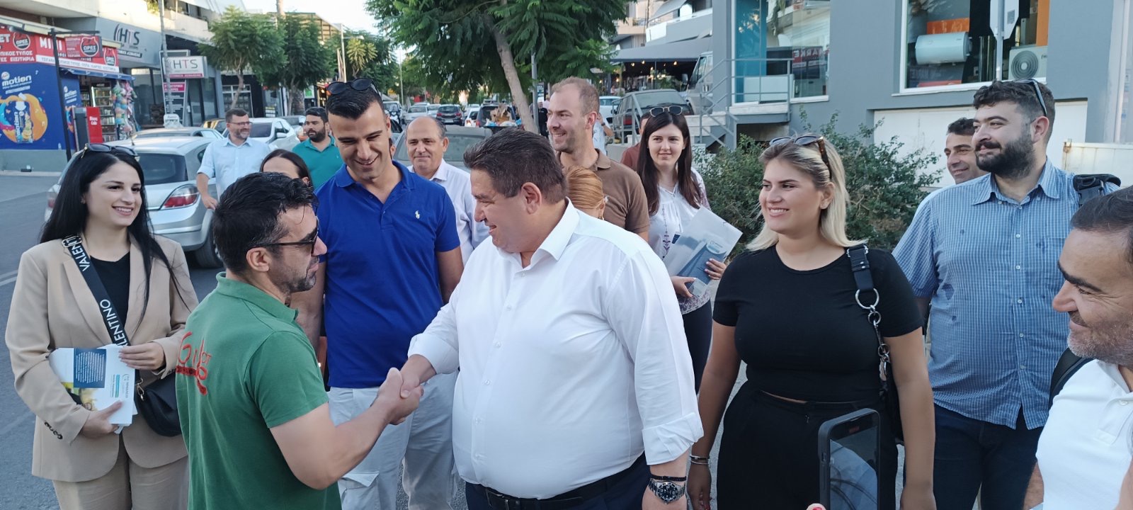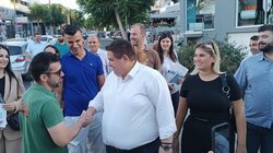 Αρκετός ήταν και ο κόσμος που σταμάτησε για να του ευχηθεί «καλό αγώνα» και «καλή τύχη» στις επερχόμενες αυτοδιοικητικές εκλογές.