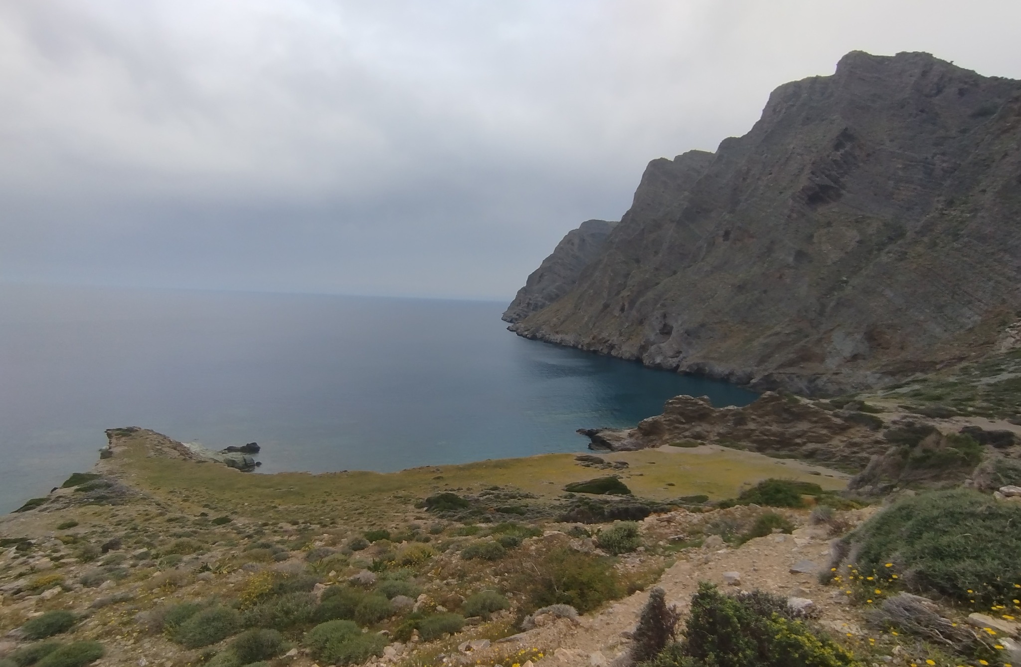 Από εδώ, όσοι μπορούμε, θα κατέβουμε ακόμα πιο χαμηλά ως τη θέση Χαλινομούρι δίπλα στις μυστηριώδεις απόκρημνες ακτές, ενώ οι υπόλοιποι θα περιμένουν στον Ενετικό Πύργο του Κορνάρου. Όλοι μαζί θα συνεχίσουμε ως τα ξωκλήσια της Ανάληψης και του Αγίου Δημητρίου κι έπειτα θα ανηφορίσουμε από το παλιό καλντερίμι πίσω στο χωριό, θα περιηγηθούμε στο γραφικά σοκάκια του και θα το διασχίσουμε ως την Αγία Μαρίνα και το Κεφαλοβρύσι.