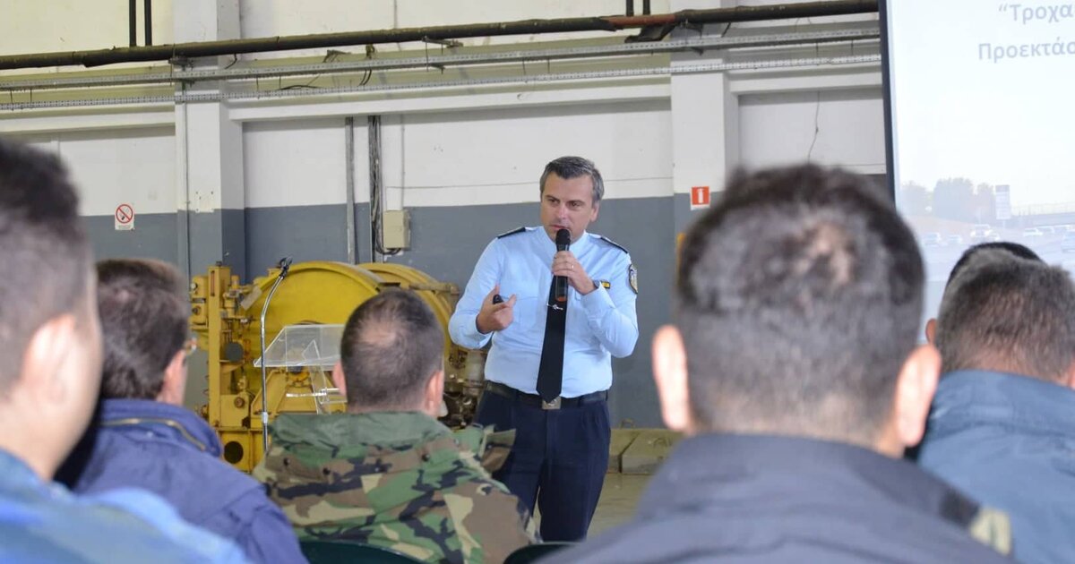 Στην 133 Σμηναρχία Μάχης στο Καστέλι βρέθηκε ο Διοικητής της Τροχαίας Ηρακλείου Αστυνόμος Β΄ Στέλιος Καρακούδης ενημερώνοντας το μόνιμο προσωπικό της μονάδα για τις βασικές αρχές οδικής ασφάλειας, για την πρόληψη των τροχαίων ατυχημάτων και την προστασία της σωματικής ακεραιότητας επιβαίνοντας σε κάποιο όχημα.