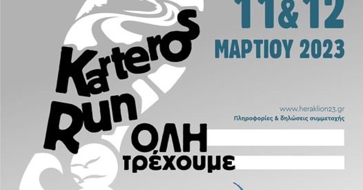 Το 1ο KARTEROS RUN διοργανώνει η Οργανωτική Επιτροπή των 3ων Μεσογειακών Παράκτιων Αγώνων «Ηράκλειο 2023», έξι μήνες πριν από το μεγάλο αθλητικό ραντεβού των περισσότερών από 1.000 αθλητών από τις 26 χώρες της λεκάνης της Μεσογείου, με συνδιοργανωτές το Υφυπουργείο Αθλητισμού και το ΕΑΚ Ηρακλείου, καθώς και τους εξής αθλητικούς φορείς και σωματεία: