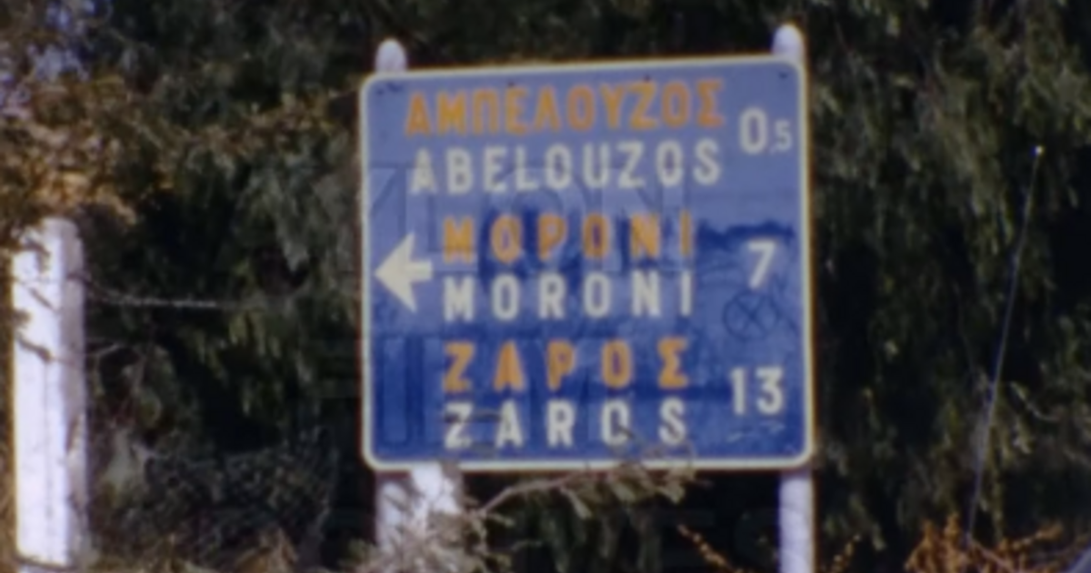 Ο κινηματογραφιστής βρίσκεται καθ' οδόν προς την αρχαία πόλη της Γόρτυνας στον Νομό Ηρακλείου στην Κρήτη. Το φιλμ ξεκινά με πλάνο οδικής πινακίδας με κατεύθυνση Αμπελούζο, Μορόνι και Ζαρό.