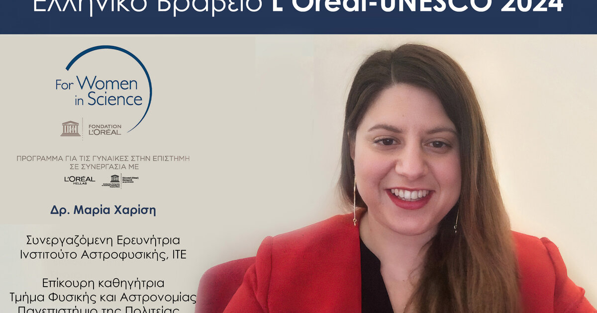 Στη Δρ. Μαρία Χαρίση, συνεργαζόμενη ερευνήτρια στο Ινστιτούτο Αστροφυσικής του Ιδρύματος Τεχνολογίας και Έρευνας (ΙΤΕ) και Επίκουρη Καθηγήτρια στο Πανεπιστήμιο της Πολιτείας Ουάσινγκτον των ΗΠΑ, απονεμήθηκε το Ελληνικό Βραβείο 2024 L'ORÉAL-UNESCO για τις Γυναίκες στην Επιστήμη, στον κλάδο των Φυσικών Επιστημών.