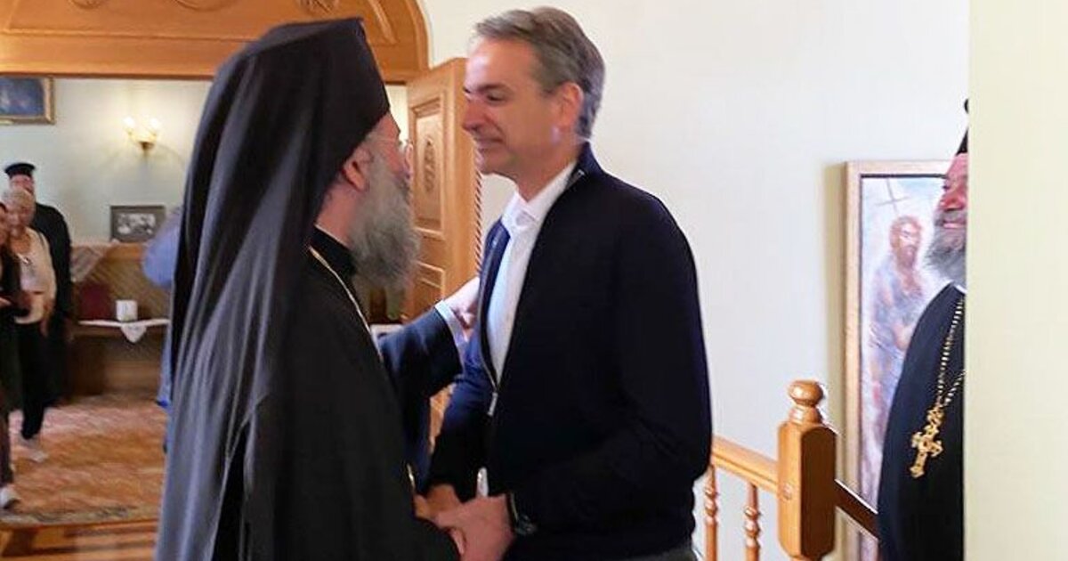 "Ο Σεβασμιώτατος καλωσόρισε τον κ. Μητσοτάκη, εκφράζοντας κατ’ αρχάς τις ευχαριστίες για την τακτοποίηση του επί σειρά δεκαετιών ευρισκομένου σε εκκρεμότητα θέματος των οργανικών θέσεων των Κληρικών και ευχόμενος σε αυτόν κάθε επιτυχία και κάθε προαγωγή του έργου του για το καλό του τόπου και της Πατρίδος μας.