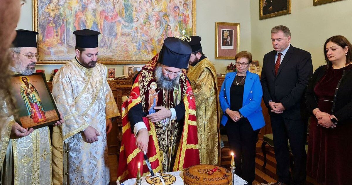 Μετά το πέρας της Δοξολογίας, ο Σεβασμιώτατος μαζί με τους Άρχοντες και όλο το εκκλησίασμα ανήλθαν στην αίθουσα του θρόνου, στα γραφεία της Ιεράς Μητροπόλεώς μας, όπου πραγματοποιήθηκε η κοπή της αγιοβασιλόπιτας και η χορωδία του Ιερού Μητροπολιτικού Ναού έψαλε τα πρωτοχρονιάτικα κάλαντα και τον πολυχρονισμό του Σεβασμιωτάτου Ποιμενάρχου μας κ. Προδρόμου.