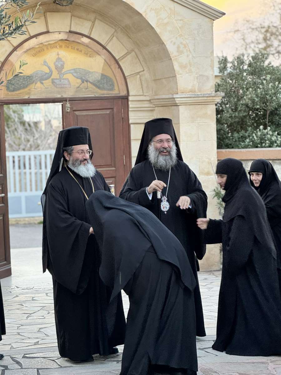 Προ της απολύσεως της Θείας Λειτουργίας, ο Σεβασμιώτατος κ. Πρόδρομος με θερμούς λόγους παρουσίασε τον Θεοφιλέστατο στο εκκλησίασμα και εξέφρασε τις ευχές όλων για την ονομαστική του εορτή, ευχόμενος σε εκείνον πολύκαρπη και καλλίκαρπη διακονία στη μαρτυρική Εκκλησία της Κύπρου, τονίζοντας τους δεσμούς αγάπης και τιμής των Μεγαλονήσων Κύπρου και Κρήτης.