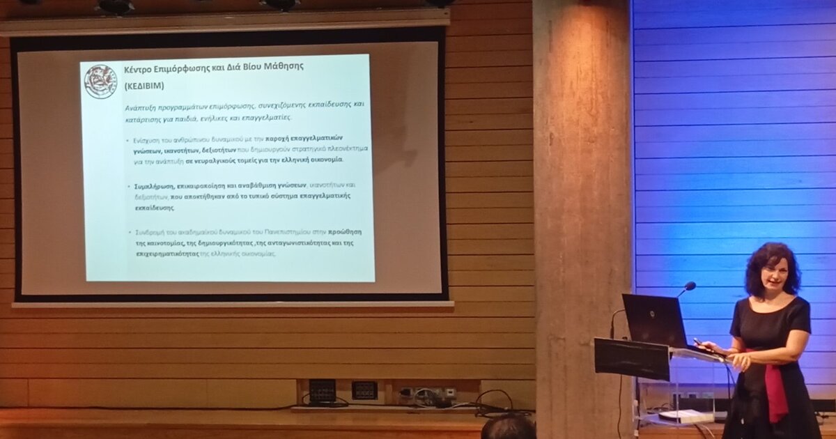 Στην Ημερίδα παρουσιάστηκαν από την Αντιπρύτανη Ακαδημαϊκών Υποθέσεων, Δια Βίου Μάθησης και Ερευνητικής Πολιτικής του Πανεπιστημίου Κρήτης Καθηγήτρια Μαρία Βαμβακάκη, όλες οι δυνατότητες συνέργειας του Ιδρύματος με το Φαρμακευτικό Σύλλογο Ηρακλείου και τους επαγγελματίες του χώρου, τόσο σε επίπεδο ερευνητικών συνεργασιών και παροχής υπηρεσιών, όσο και στα πλαίσια τυπικής και μη τυπικής εκπαίδευσης στις σύγχρονες τεχνολογίες του τομέα.
