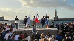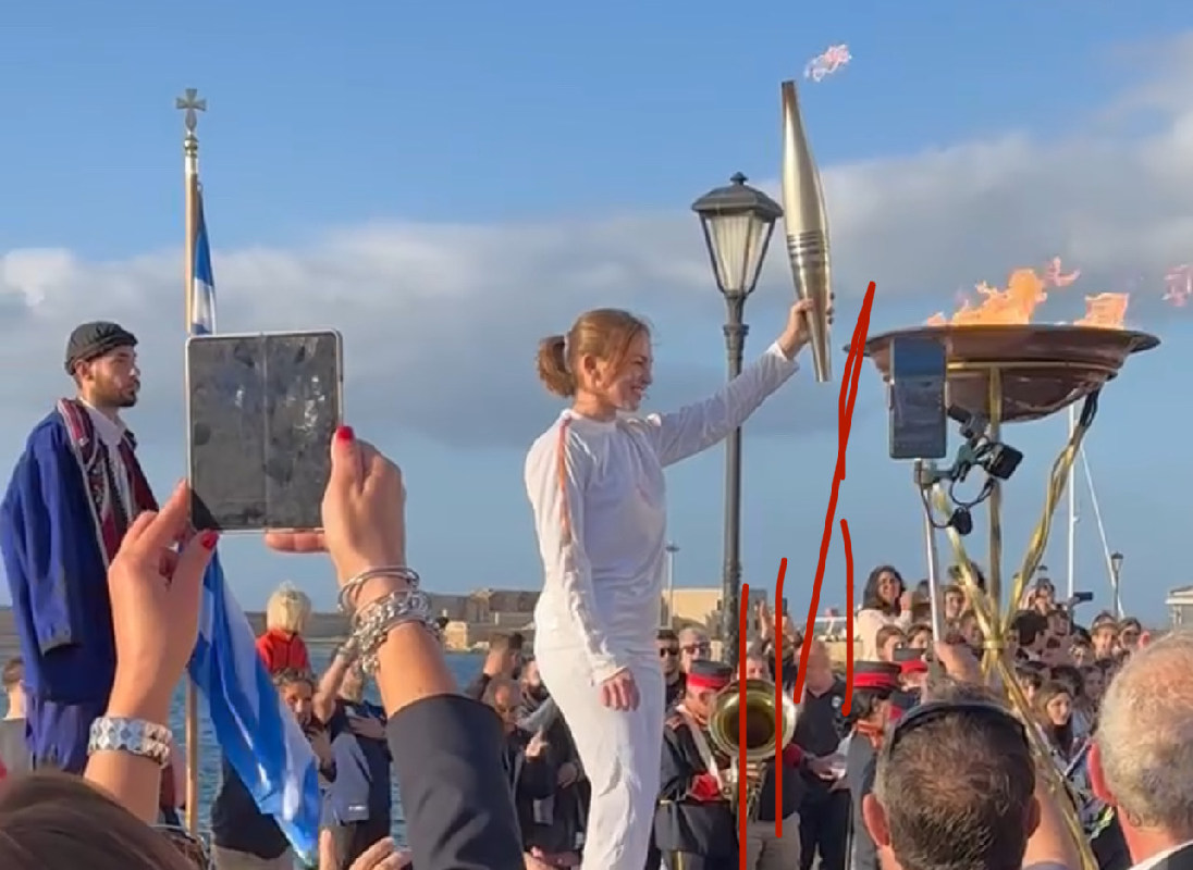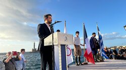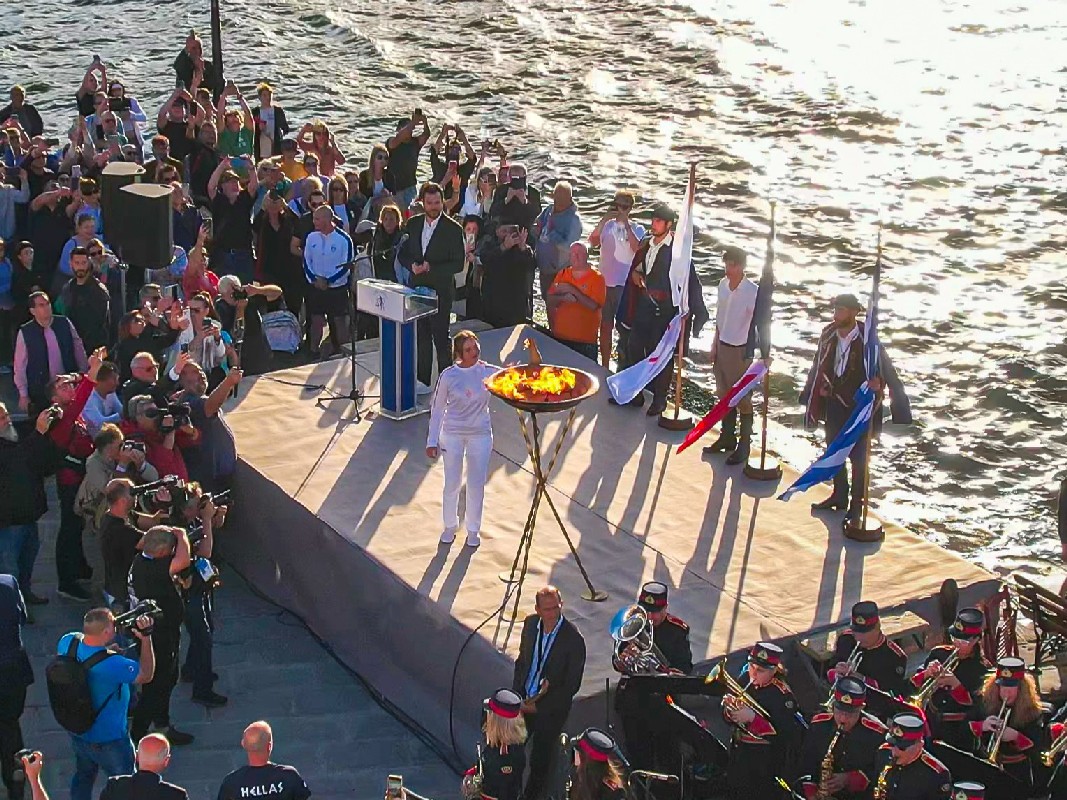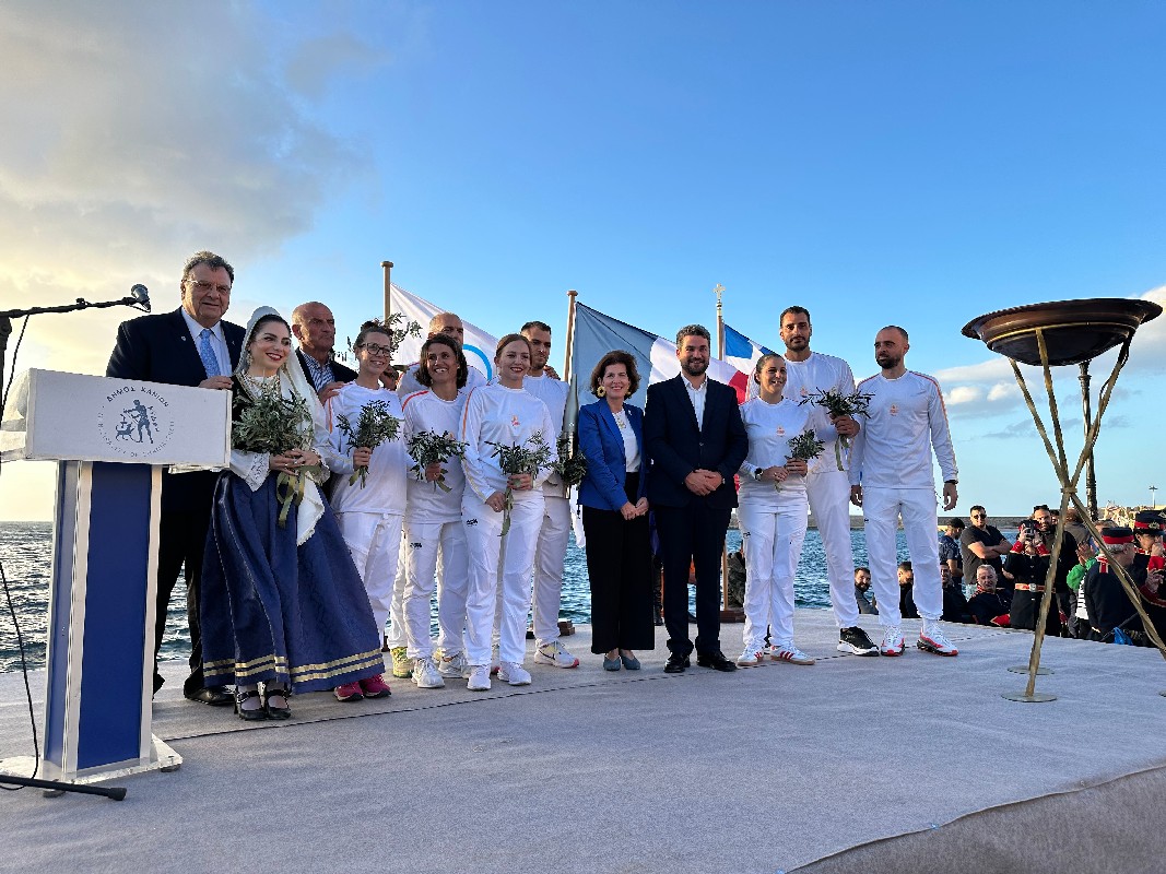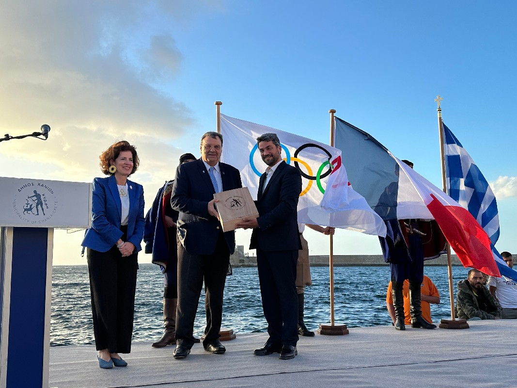«Από εδώ, από το Ενετικό Λιμάνι των Χανίων, το σταυροδρόμι των τριών ηπείρων και το πέρασμα των θαλάσσιων δρόμων της Δύσης για την Άπω Ανατολή, με το ιστορικό και το πολιτιστικό φορτίο των 50 αιώνων γινόμαστε και εμείς ένας κρίκος στην περίτεχνη αλυσίδα μιας μεγάλης διαδρομής που σας ευχόμαστε να στεφθεί με απόλυτη επιτυχία, ώστε να εγγραφούν οι Ολυμπιακοί Αγώνες «Παρίσι 2024» ως μια ακόμα φωτεινή νησίδα στις σελίδες της Παγκόσμιας Ιστορίας».