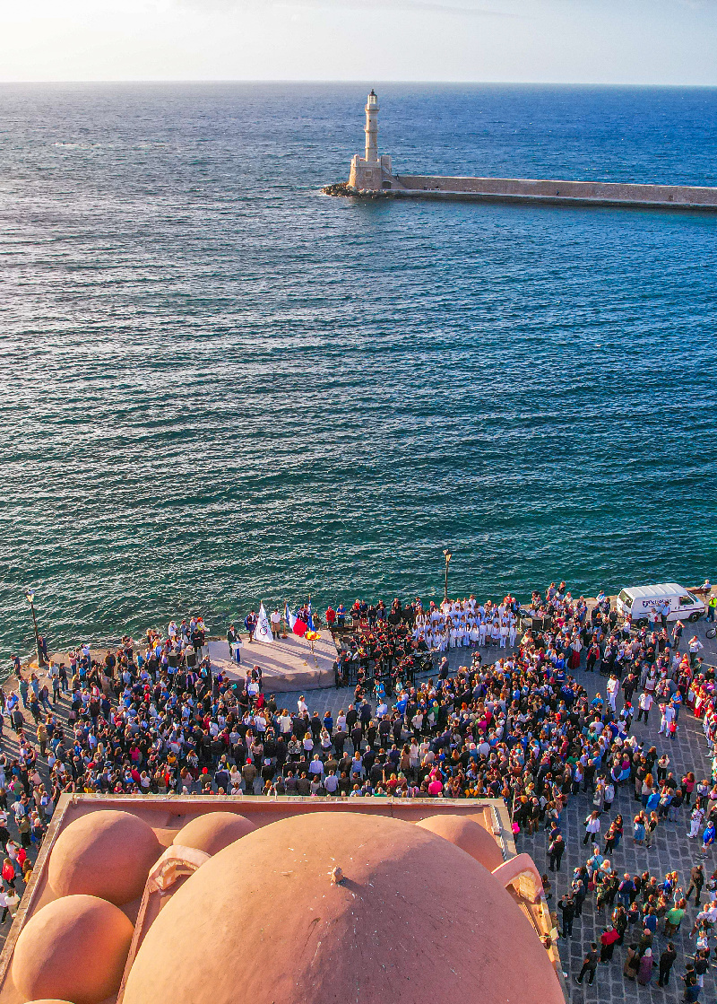 Την εκδήλωση πλαισίωσαν μουσικά η Φιλαρμονική του Δήμου Χανίων, υπό τη Διεύθυνση του Αρχιμουσικού Παύλου Μπαϊλάκη, η Παιδική-Εφηβική Χορωδία του Δήμου Χανίων, υπό τη Διεύθυνση του μαέστρου Νίκου Περράκη, με την ανάκρουση του Ολυμπιακού Ύμνου, των Εθνικών ύμνων Ελλάδας και Γαλλίας και μελωδίες του Βαγγέλη Παπαθανασίου και του Μίκη Θεοδωράκη.
