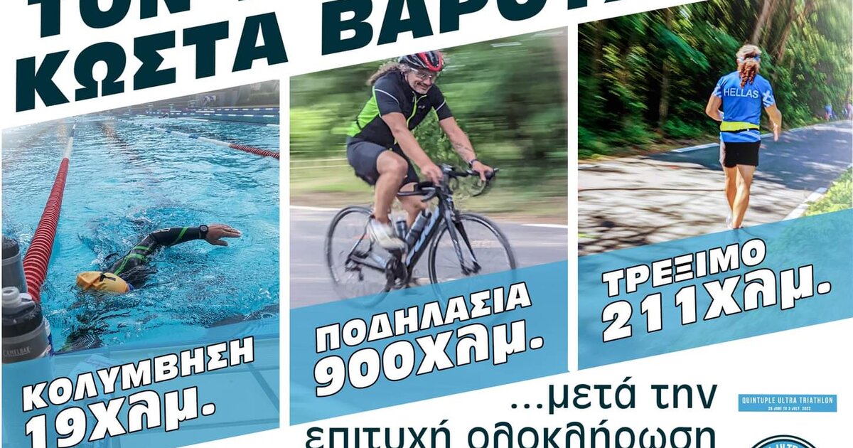 Η Κίσσαμος υποδέχεται την ερχόμενη Τρίτη τον υπεραθλητή Κώστα Βαρουχάκη, μετά την επιτυχημένη ολοκλήρωση του Quintuple Ultra Triathlon στο Κολμάρ της Γαλλίας, που περιελάμβανε 19 χλμ. κολύμβησης, 900 χλμ. ποδηλασίας και 211 χλμ. τρέξιμο, σε μια υπερπροσπάθεια 7 ημερών.