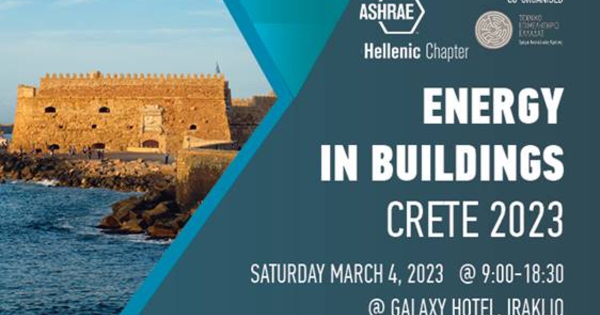 Το συνέδριο θα πραγματοποιηθεί στις 4 Μαρτίου 2023, στο ξενοδοχείο Galaxy (Ηράκλειο Κρήτης) στο πρώτο συνέδριο της ASHRAE Hellenic Chapter στην Κρήτη, σε συνδιοργάνωση με το Τεχνικό Επιμελητήριο Ελλάδος / Τμήμα Ανατολικής Κρήτης.