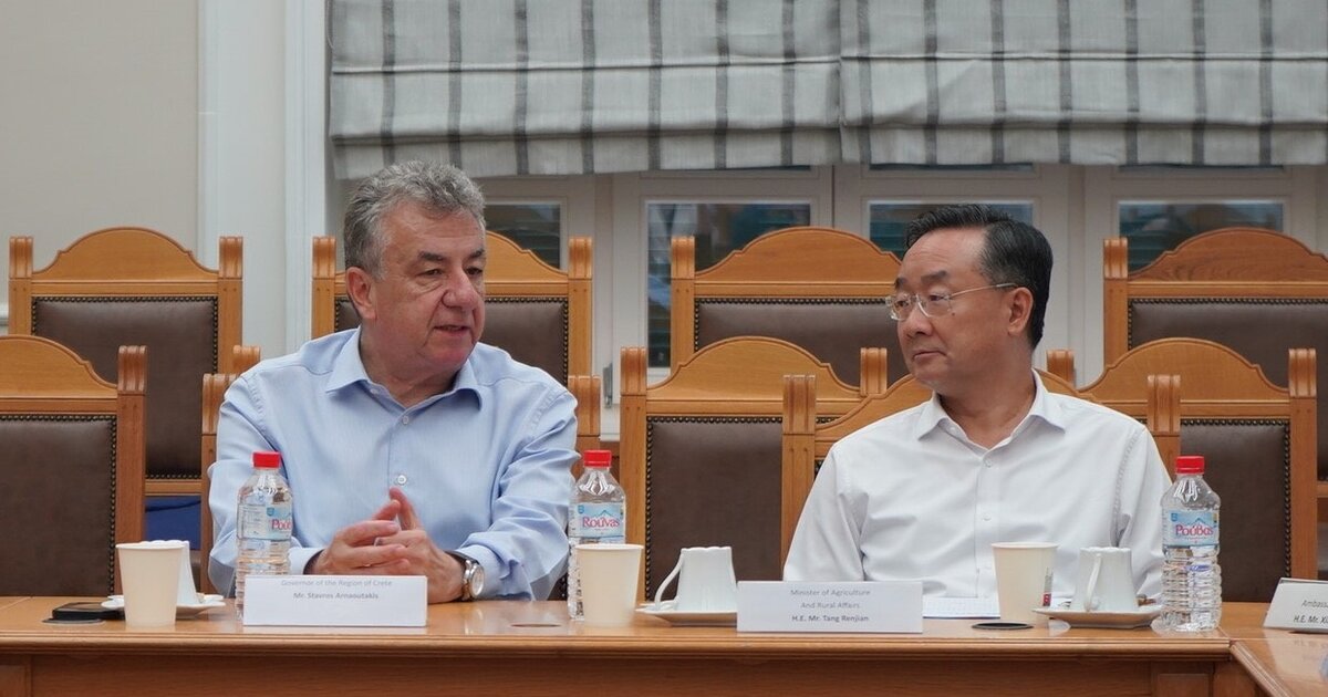 Την Περιφέρεια Κρήτης επισκέφθηκε σήμερα ο Υπουργός Αγροτικής Ανάπτυξης της Κίνας Tang Renjian, συνοδευόμενος από τον Πρέσβη της Κίνας στην Ελλάδα Xiao Junzheng, Γενικούς Διευθυντές και αξιωματούχους του Κινεζικού Υπουργείου Αγροτικής Ανάπτυξης και της Κινεζικής Πρεσβείας στην Ελλάδα.