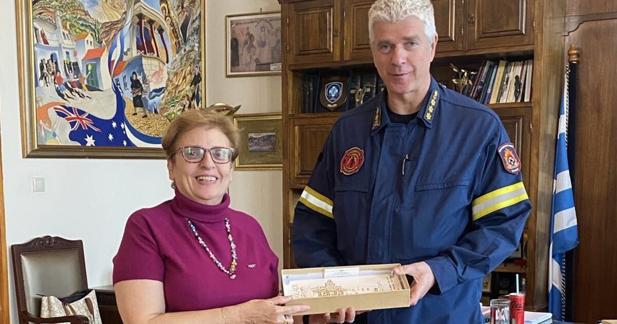Την Αντιπεριφερειάρχη Ρεθύμνης, κα Μαρία Λιονή, επισκέφτηκε σήμερα ο νέος Διοικητής της Πυροσβεστικής Υπηρεσίας Ρεθύμνου, Πύραρχος, κ. Κωνσταντίνος Θεοδοσίου, στο πλαίσιο της ανάληψης των καθηκόντων του.