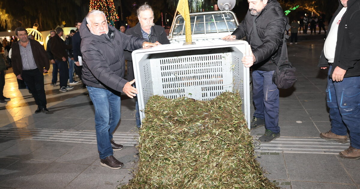 Στην Περιφέρεια Κρήτης οι αγρότες: Πέταξαν φύλλα ελιάς στην πλατεία Ελευθερίας