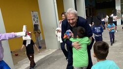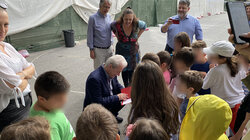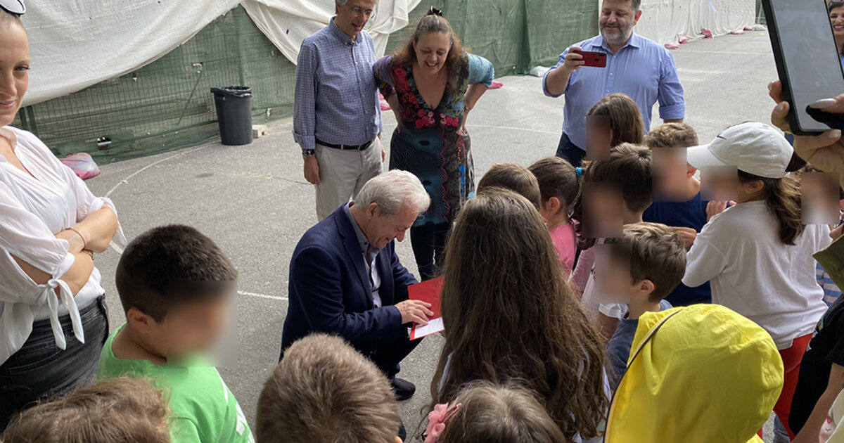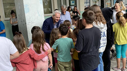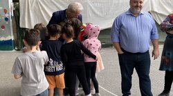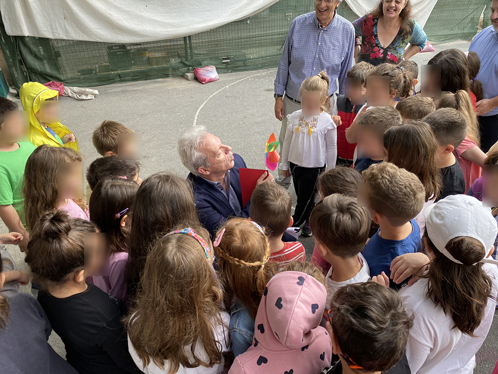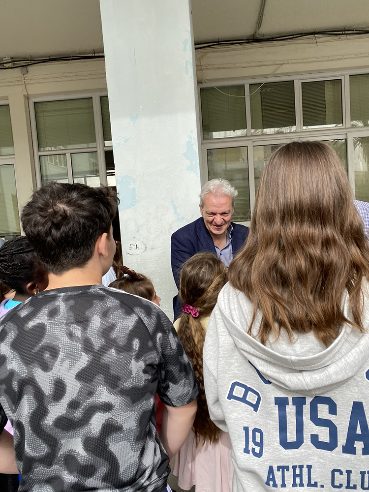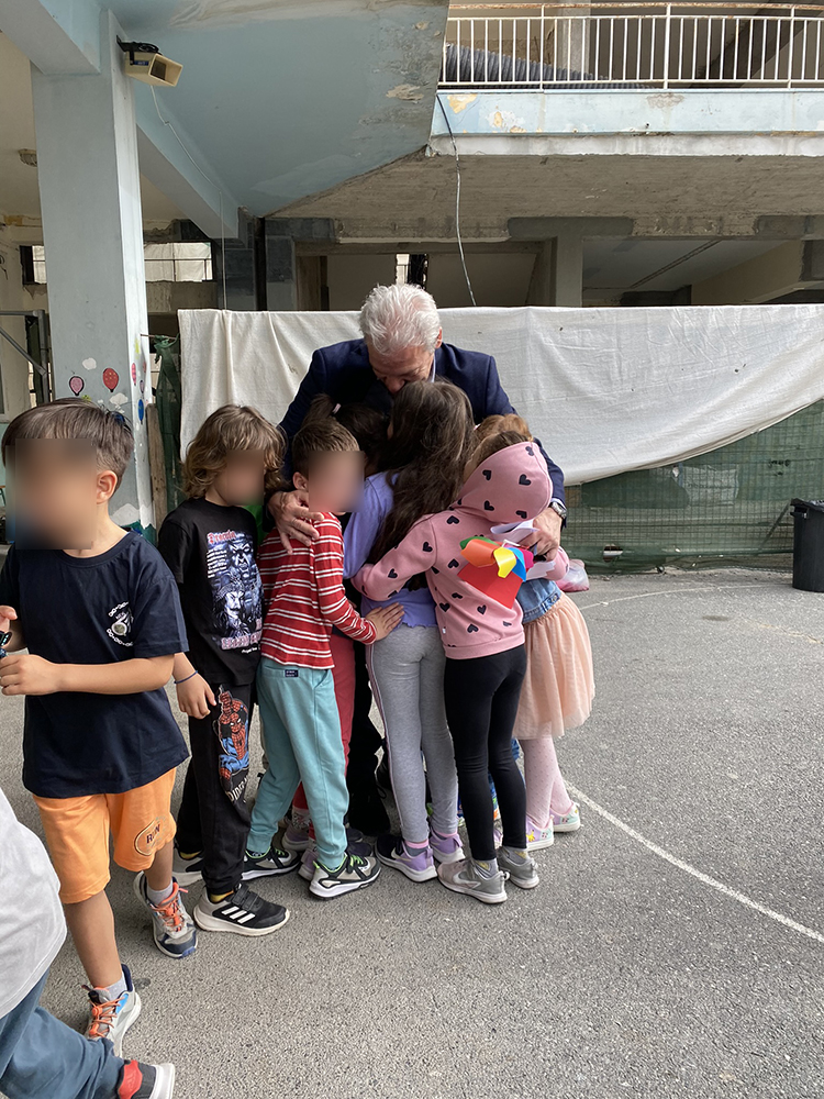 Ιδιαίτερες ήταν όμως και οι στιγμές που ο Δήμαρχος Ηρακλείου βρέθηκε στο προαύλιο του σχολείου μαζί με τις μικρές μαθήτριες και τους μικρούς μαθητές των σχολείων. Ο Αλέξης Καλοκαιρινός μίλησε με τα παιδιά, δέχθηκε δώρα, ενώ έγινε και δέκτης της αγάπης τους, όπως μαρτυρούν οι φωτογραφίες. «Θέλω να ξέρετε ότι όλοι εμείς και η κοινότητα των εκπαιδευτικών, σας αγαπάμε, σας εμπιστευόμαστε και σας νοιαζόμαστε πάρα πολύ. Εσείς είστε η επόμενη γενιά, εσείς κάποια στιγμή – που δεν θα αργήσει και πάρα πολύ – θα πάρετε την πόλη στα χέρια σας. Εμείς προσπαθούμε για να είναι η ζωή καλύτερη στην πόλη, εσείς θα πάτε και τη ζωή και την πόλη πιο μπροστά» τους είπε ο Δήμαρχος Ηρακλείου και πρόσθεσε: «Αυτό που θεωρώ πολύ σημαντικό, είναι να αντιμετωπίζουμε όλους τους άλλους με αγάπη και καλή διάθεση. Να είμαστε με την μεριά της αγάπης. Και η αγάπη είναι για όλους. Όλοι άνθρωποι είναι.». Ο Αλέξης Καλοκαιρινός δεν παρέλειψε να αναφερθεί και στις δράσεις προστασίας του περιβάλλοντος που γίνονται στο σχολείο, λέγοντας: «Εσείς είστε η γενιά που έχει μεγαλύτερη ευαισθησία από εμάς για το περιβάλλον. Για τα δένδρα, για την καθαριότητα, για την ανακύκλωση. Ξέρω ότι τα έχετε στο μυαλό σας.».