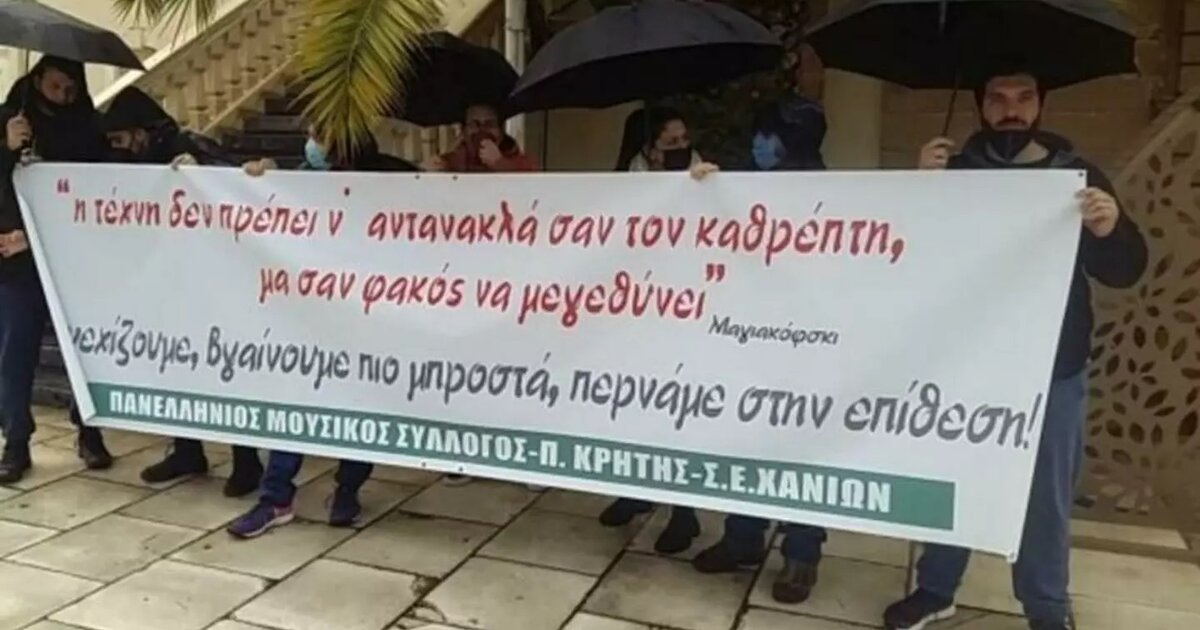Καλούμε στη συγκέντρωση στην Περιφέρεια Χανίων τη Τρίτη 10 Γενάρη, που θα γίνει σε συντονισμό με τον Π.Μ.Σ. που καλεί στην μοτοπορεία που θα ξεκινήσει από το Πεδίο του Άρεως και θα καταλήξει στο Υπουργείο Παιδείας και με άλλα παραρτήματα του Π.Μ.Σ. και Μουσικά Σωματεία σε όλη την Ελλάδα που διοργανώνουν κινητοποιήσεις έξω από τα κτήρια των κατά τόπους Περιφερειακών Αρχών.