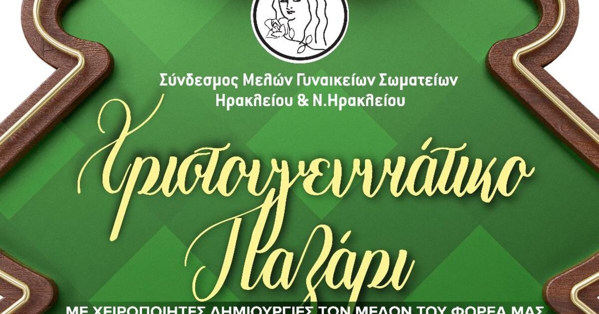 Ο «Σύνδεσμος Μελών Γυναικείων Σωματείων Ηρακλείου και Ν. Ηρακλείου» δίνει και φέτος το καθιερωμένο του ραντεβού με τα Χριστούγεννα, στο Αίθριο της Λότζια, στις 19 και 20 Δεκεμβρίου 2022.