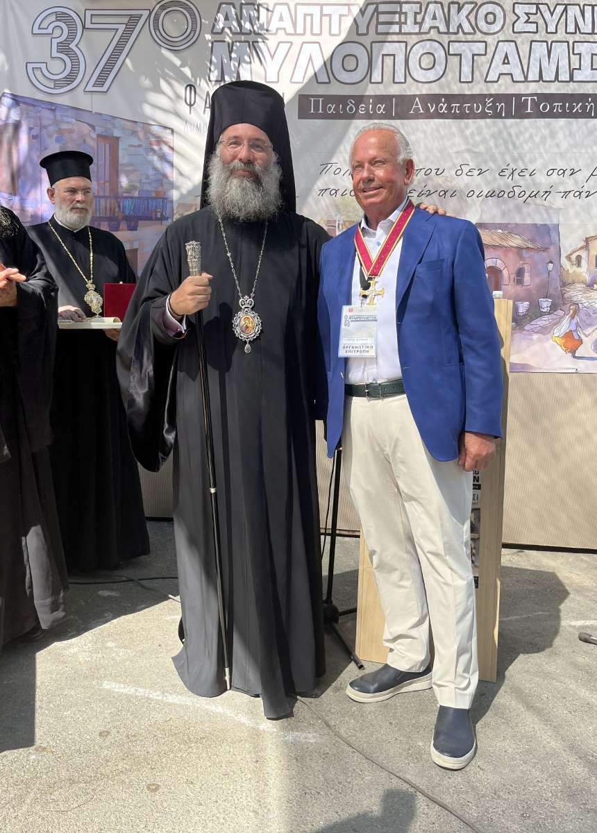 Ο Σεβασμιώτατος χαιρέτισε καταλλήλως το Συνέδριο και παράλληλα τίμησε για την προσφορά του στον τόπο και στην Ιερά Μητρόπολη τον επιχειρηματία Γεώργιο Σιγανό