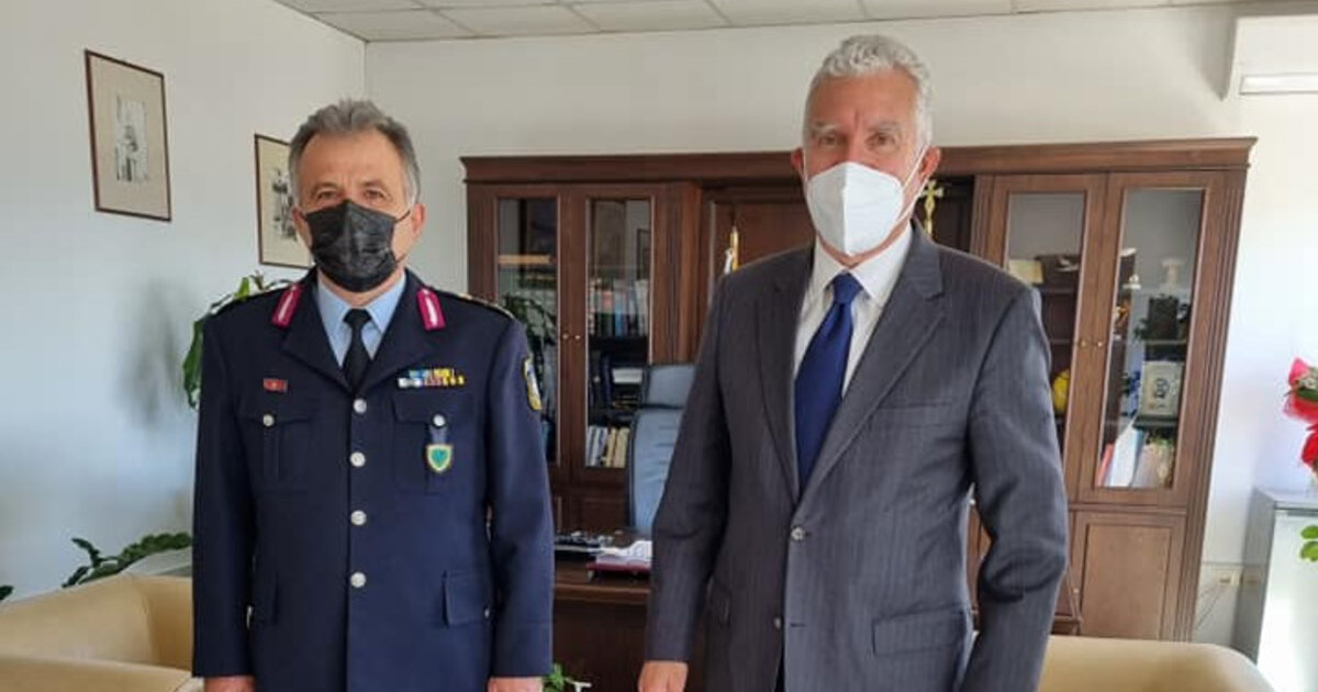 Για να συγχαρεί το νέο Γενικό Αστυνομικό Διευθυντή Κρήτης Υποστράτηγο Γιώργο Λυμπινάκη και το νέο Αστυνομικό Διευθυντή Χανίων Γιώργο Μαστραντωνάκη για την ανάληψη των καθηκόντων τους