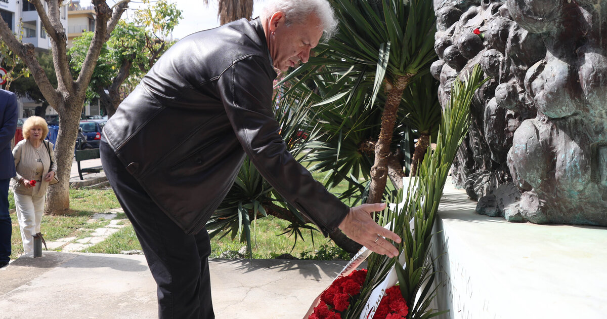 Τιμώντας την Εργατική Πρωτομαγιά, ο Δήμαρχος Ηρακλείου Αλέξης Καλοκαιρινός κατέθεσε στεφάνι στο μνημείο των νεκρών της εργατικής τάξης στο Εργατικό Κέντρο Ηρακλείου - Ε.Κ.Η. το πρωί της Τετάρτης 1 Μαΐου.