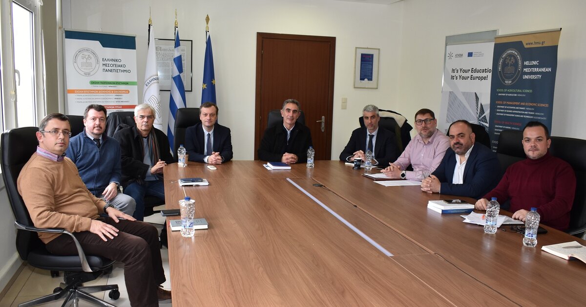 Εθιμοτυπική και ενημερωτική επίσκεψη σε θέματα συνεργασίας με το Ελληνικό Μεσογειακό Πανεπιστήμιο (ΕΛΜΕΠΑ) πραγματοποιήθηκε στην Πρυτανεία, την Τετάρτη 31 Ιανουαρίου 2024, από αντιπροσωπεία του νέου ΔΣ του Οικονομικού Επιμελητηρίου, Περιφερειακό Τμήμα Ανατολικής Κρήτης. Στη συνάντηση από πλευράς ΕΛΜΕΠΑ παρευρέθηκαν ο Πρύτανης Καθ. Νίκος Κατσαράκης, το Μέλος του Συμβουλίου Διοίκησης του ΕΛΜΕΠΑ Καθ. Χρήστος Φλώρος, ο Πρόεδρος του Τμήματος Λογιστικής και Χρηματοοικονομικής Αν. Καθ. Ιωάννης Χατζηαντωνίου, ο Αντιπρόεδρος του Τμήματος Διοίκησης Επιχειρήσεων και Τουρισμού Αν. Καθ. Γεώργιος Ξανθός και ο Πρόεδρος του Τμήματος Διοικητικής Επιστήμης και Τεχνολογίας Αν. Καθ. Κωνσταντίνος Παναγιωτάκης. Από τη μεριά του Οικονομικού Επιμελητηρίου παρευρεθήκαν ο Πρόεδρος Ευάγγελος Γκλάκας, ο Αντιπρόεδρος Γεώργιος Μαυράκης, ο Οικονομικός Επόπτης Δημήτριος Αγγελιδάκης και το Μέλος Σταύρος Καρτέρης.