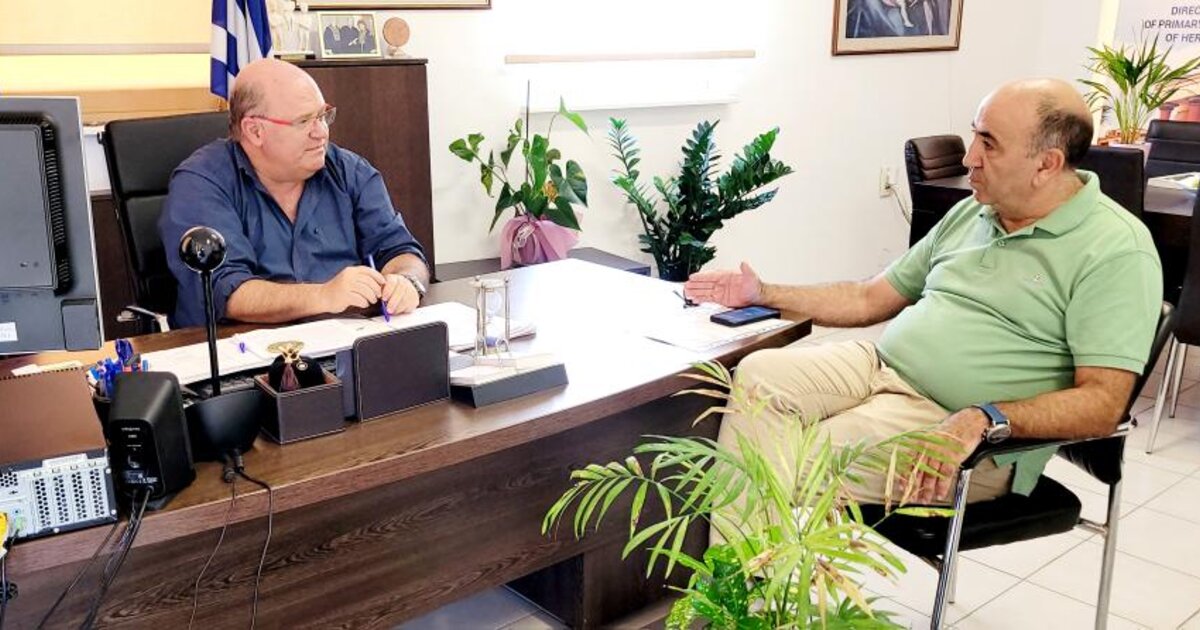 Στα γραφεία της Πρωτοβάθμιας Εκπαίδευσης Ηρακλείου πραγματοποιήθηκε σήμερα, 30 Αυγούστου 2023, συνάντηση εργασίας ανάμεσα στον Διευθυντή κ. Μπελαδάκη Εμμανουήλ και τον Γενικό Διευθυντή του Κ.Τ.Ε.Λ. Ηρακλείου-Λασιθίου κ. Χαλεπάκη Γιώργο. Η συνάντηση αφορούσε σε θέματα μεταφοράς όλων των μαθητών της Πρωτοβάθμιας Εκπαίδευσης Ηρακλείου που πληρούν τα κριτήρια βάση της σχετικής εγκυκλίου.