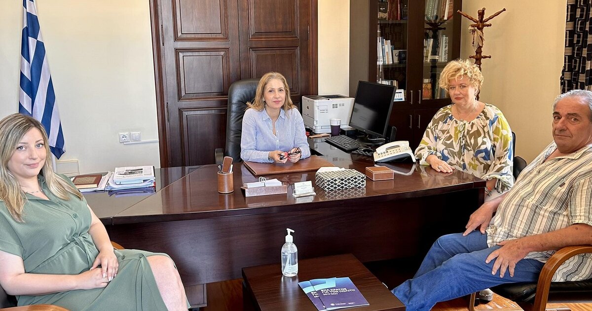 Συνάντηση με τη Γραμματέα της Αποκεντρωμένης Διοίκησης Κρήτης, Μαρία Κοζυράκη, είχε στο Ηράκλειο η Προϊσταμένη της Μονάδας Διαχείρισης Προστατευόμενων Περιοχών Ανατολικής Κρήτης, κα Λένα Γρηγοροπούλου, οργανική μονάδα που υπάγεται στη Διεύθυνση Διαχείρισης Προστατευόμενων Περιοχών της Γενικής Διεύθυνσης του Ο.ΦΥ.ΠΕ.Κ.Α. και ο Διευθυντής του Ινστιτούτου Σπηλαιολογικών Ερευνών Ελλάδας και συντονιστής της Επιτροπής Εφαρμογής και Παρακολούθησης του Σχεδίου Δράσης νήσου Χρυσή, κ. Καλούστ Παραγκαμιάν.