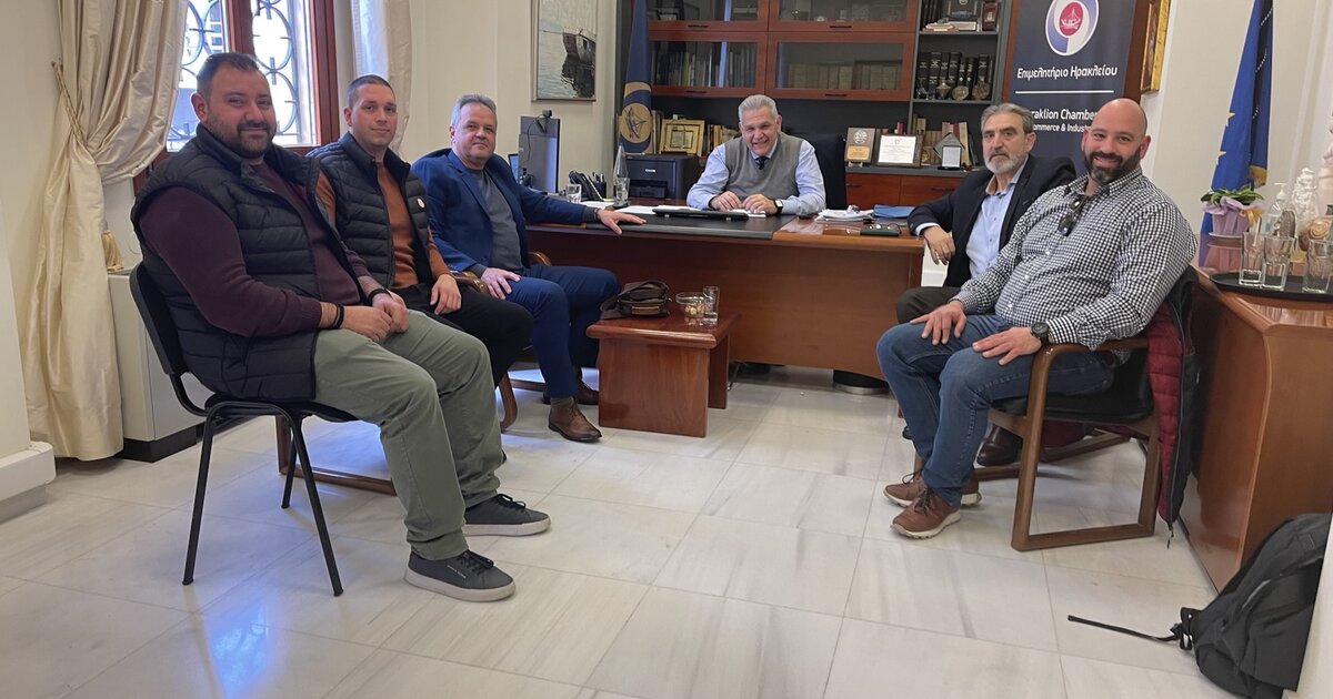 Εθιμοτυπική επίσκεψη στο Επιμελητήριο Ηρακλείου πραγματοποίησαν τα μέλη της νέας διοίκησης του Συλλόγου Ασφαλιστικών Διαμεσολαβητών Ηρακλείου και είχαν την ευκαιρία να συζητήσουν θέματα που απασχολούν τον κλάδο τους, με τον Πρόεδρο του Επιμελητηρίου κ. Βαγγέλη Καρκανάκη.