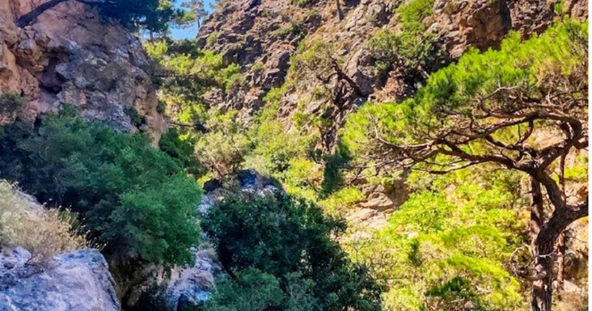 "Από το χωριό Ορεινό (Ορνό για τους κατοίκους) που βρίσκεται μεταξύ Ιεράπετρας και Σητείας θα ξεκινήσουμε την κατάβαση του ομώνυμου φαραγγιού προς το παραθαλάσσιο δασάκι του Κουτσουρά. Η πορεία χαρακτηρίζεται ως φυσιολατρική, αφού πέρα από τις πανέμορφες κόκκινες πεταλούδες που ίσως συναντήσουμε και στις οποίες οφείλει τη δεύτερη ονομασία του το φαράγγι, η ευρύτερη περιοχή διατηρεί για κάποιους μήνες ροή νερών και οι εποχιακοί καταρράκτες που σχηματίζονται ξενίζουν τον επισκέπτη. Σε αρκετά σημεία το φαράγγι είναι δασωμένο.