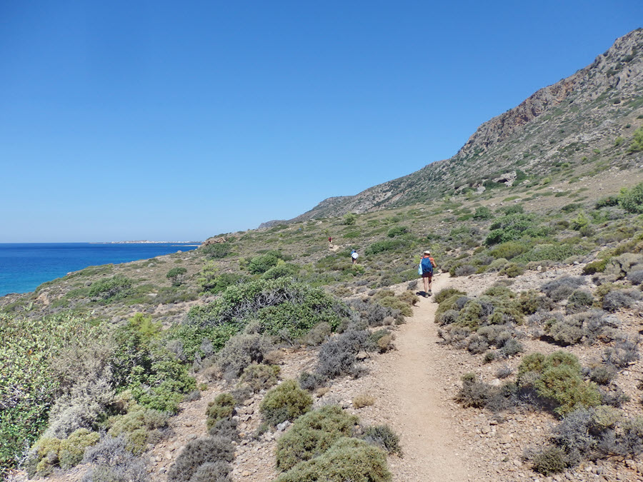 Την Κυριακή θα ξεκινήσουμε την πορεία μας προς την Παλαιόχωρα ακολουθώντας το παραλιακό μονοπάτι Ε4. Στην αρχή θα διασχίσουμε το Φαράγγι της Λισσού και θα επισκεφτούμε τον αρχαιολογικό χώρο. Στη συνέχεια θα περάσουμε από πολλούς κολπίσκους και κρυμμένες παραλίες, όπου θα κάνουμε και στάσεις για μπάνιο.