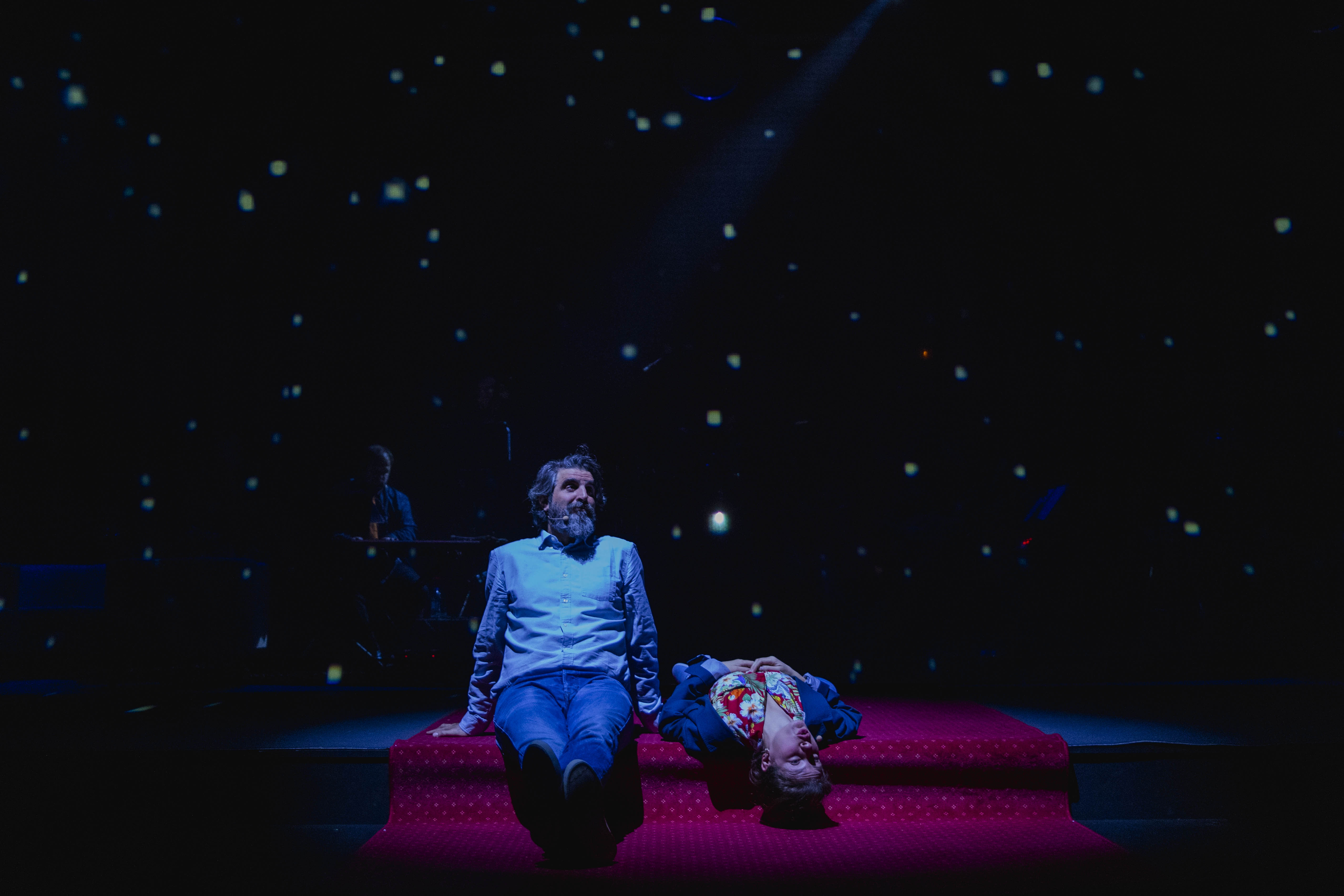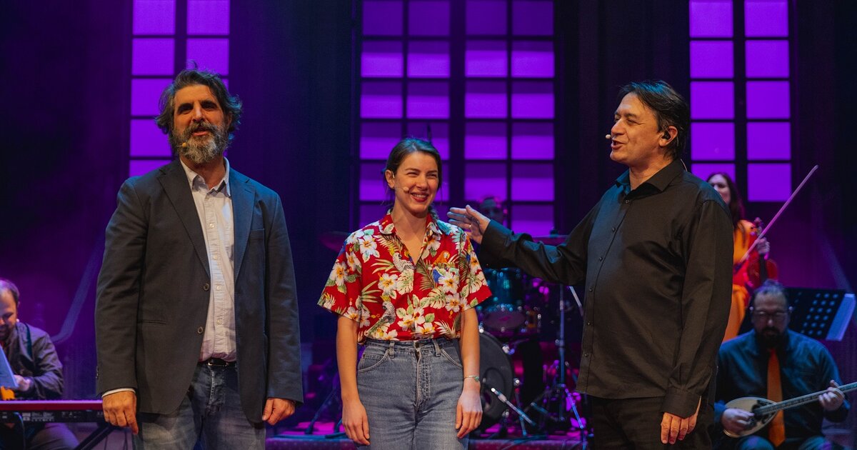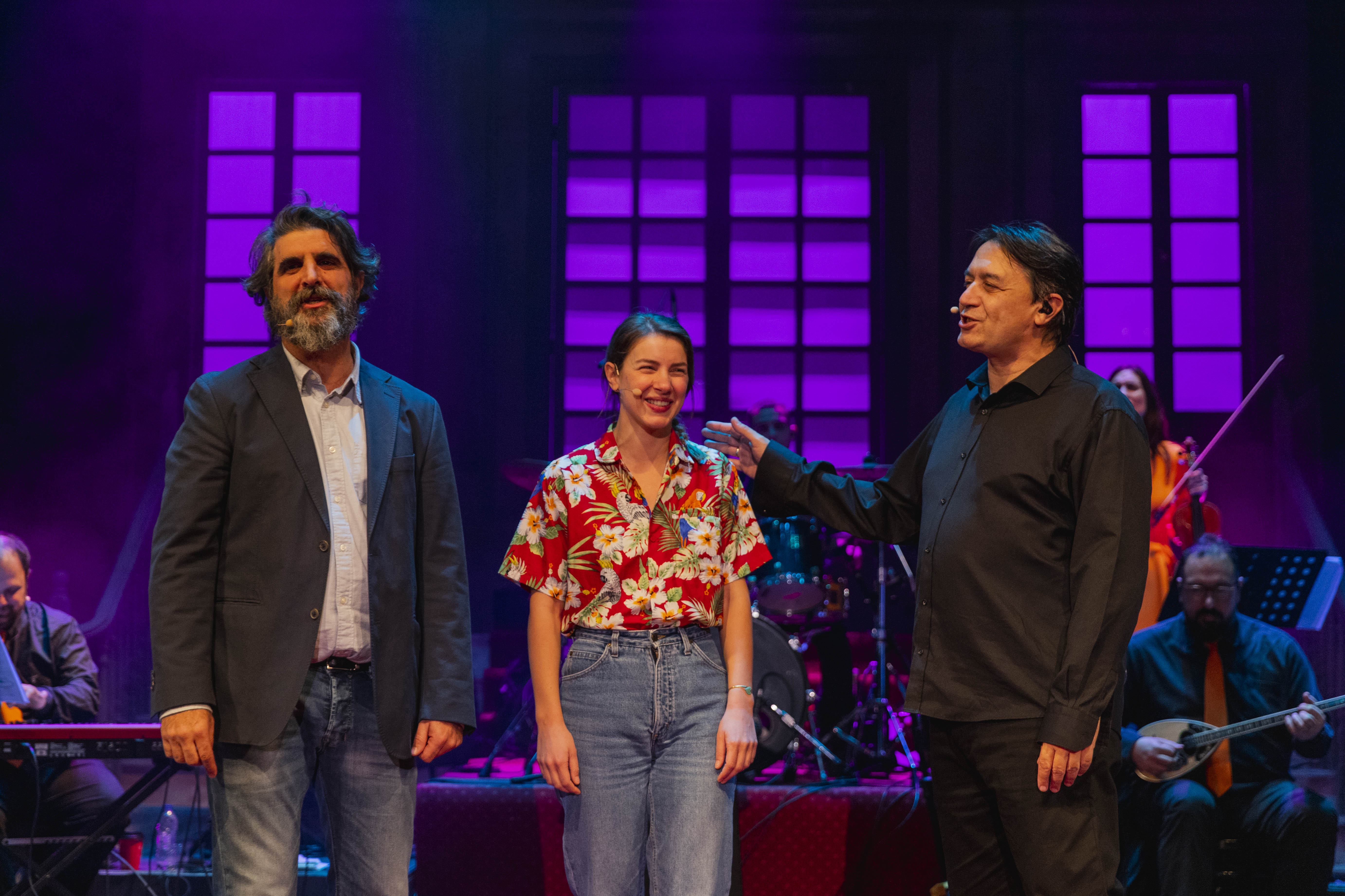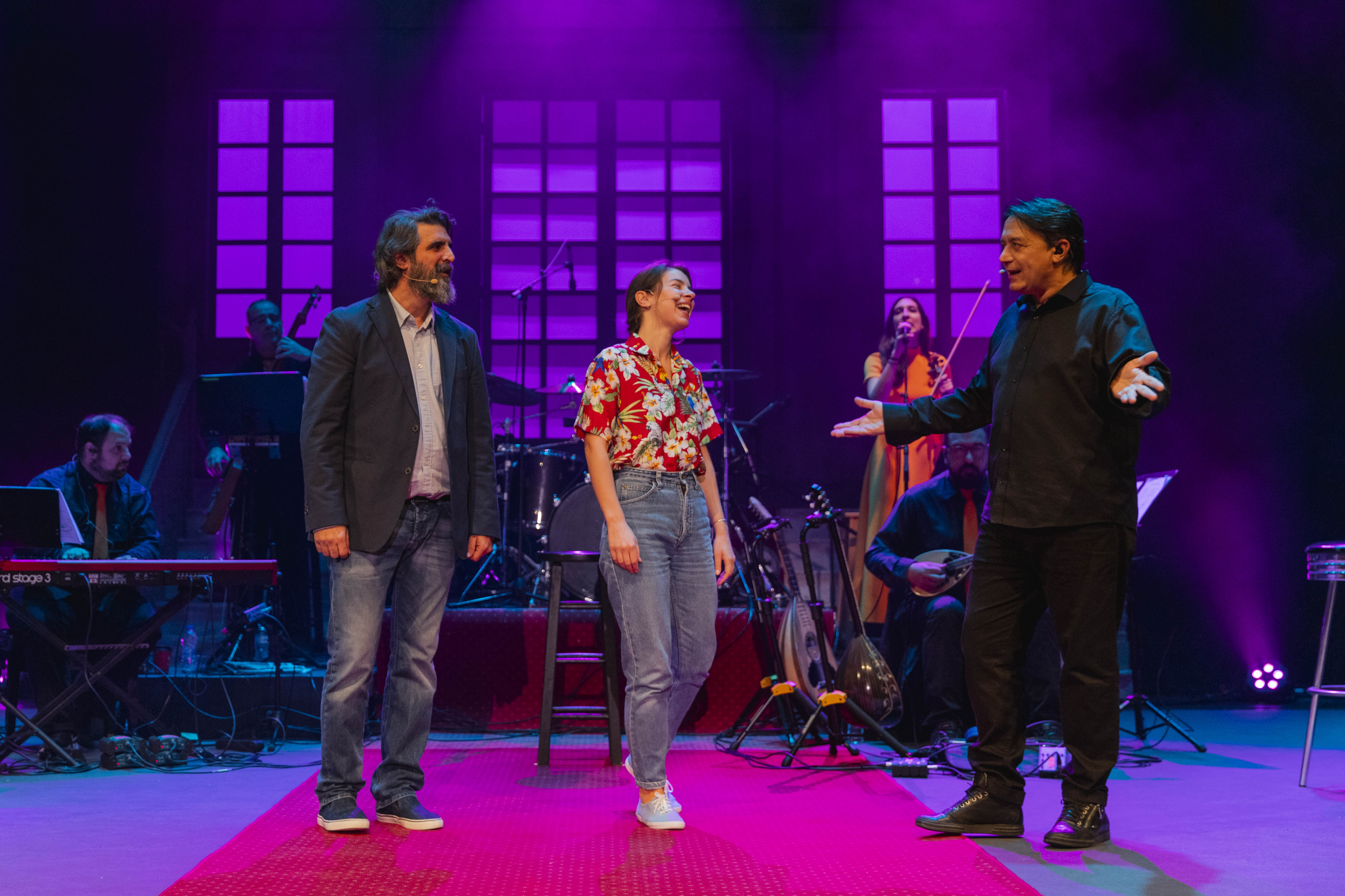 Στην παράσταση συμμετέχουν έξι μουσικοί και τρεις ηθοποιοί.