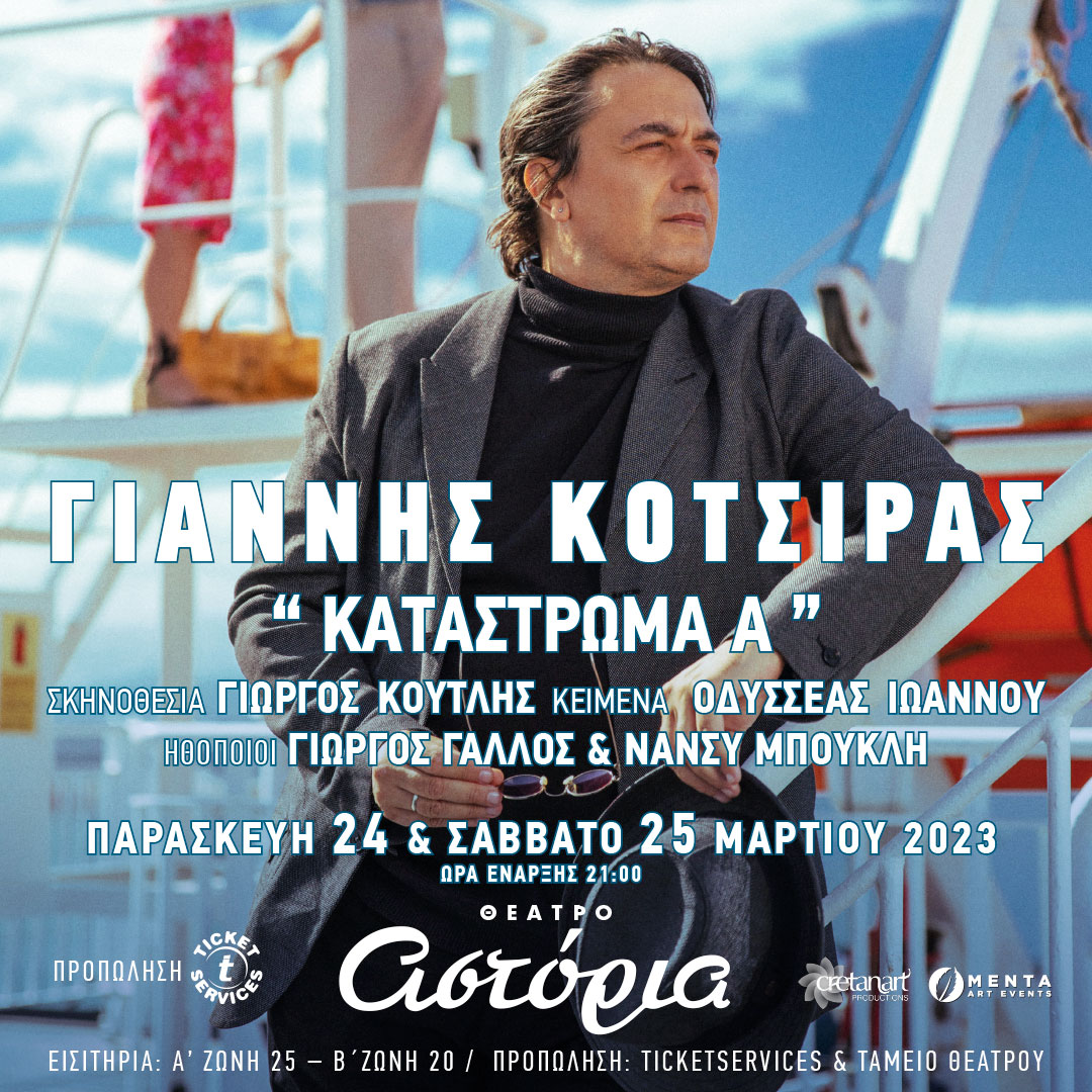 Ηλεκτρονική Προπώληση: https://www.ticketservices.gr/event/giannis-kotsiras-katastroma-a-irakleio/