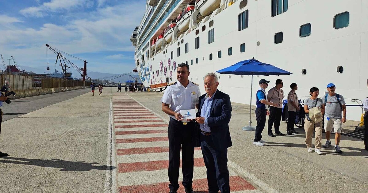 Ο Πρόεδρος του Οργανισμού Λιμένος Ηρακλείου κ. Ιωάννης Βαρδαβάς, στο πλαίσιο της εθιμοτυπικής επίσκεψης, μετέβη στο κρουαζιερόπλοιο Norwegian Gem μαζί με τον Πλωτάρχη ΛΣ Ηρακλείου κ. Γεώργιο Δανδουλάκη, όπου τους υποδέχθηκε ο Καπετάνιος του πλοίου κ. D Souza Deep Willy καθώς και o Ύπαρχος.
