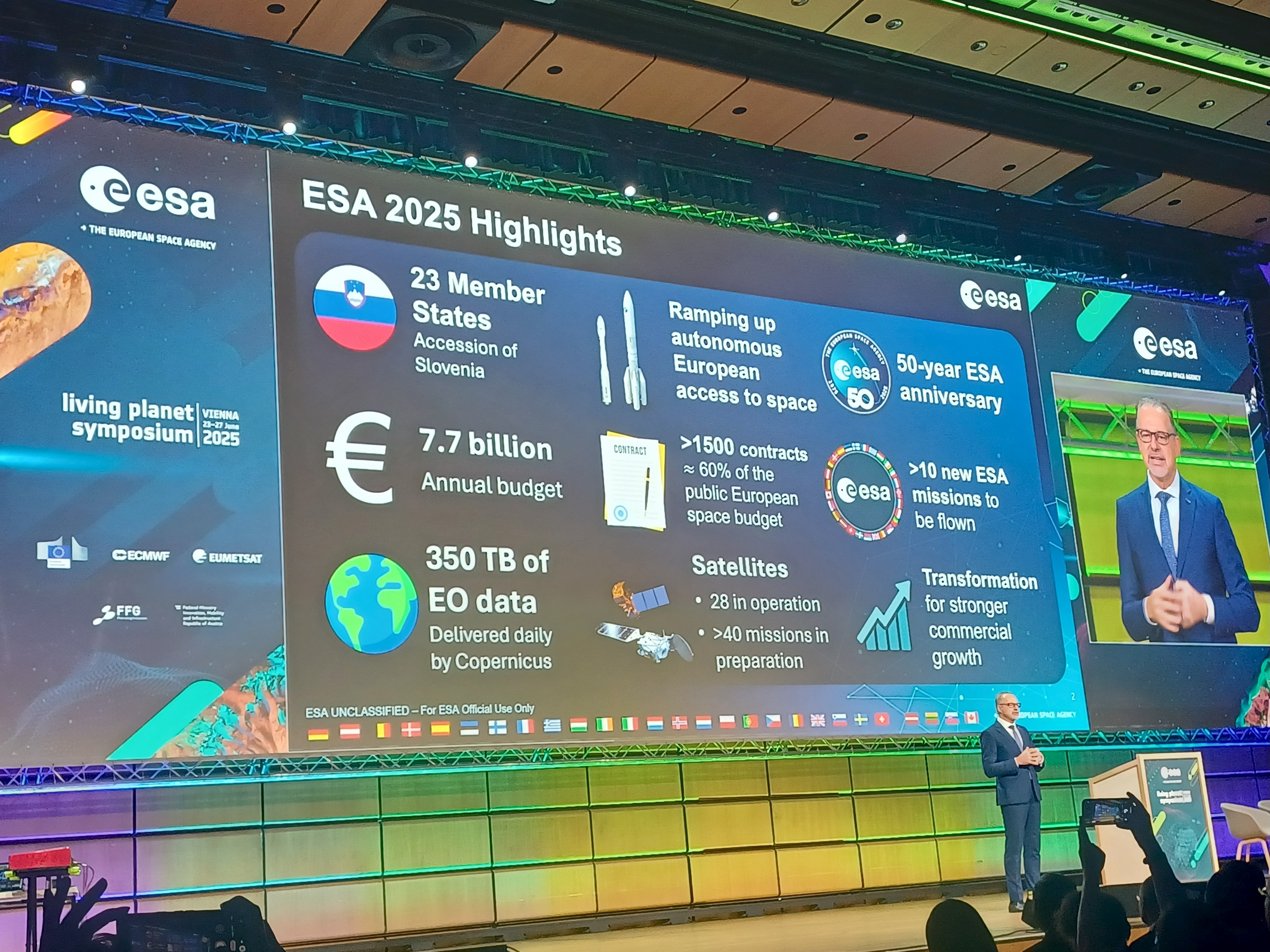 Ο Ευρωπαϊκός Οργανισμός Διαστήματος ESA (European Space Agency), πραγματοποίησε από τις 23 έως 27 Ιουνίου 2025, το Διεθνές Συνέδριο Δορυφορικών Δεδομένων Living_Planet_Symposium_2025, που φιλοξενήθηκε στο Austria_Center της Βιέννης. Πρόκειται για μια παγκόσμια διοργάνωση, που φέρνει σε επαφή την ακαδημαϊκή και ερευνητική κοινότητα, με τους δημόσιους φορείς αλλά και με τις επιχειρήσεις που καινοτομούν.