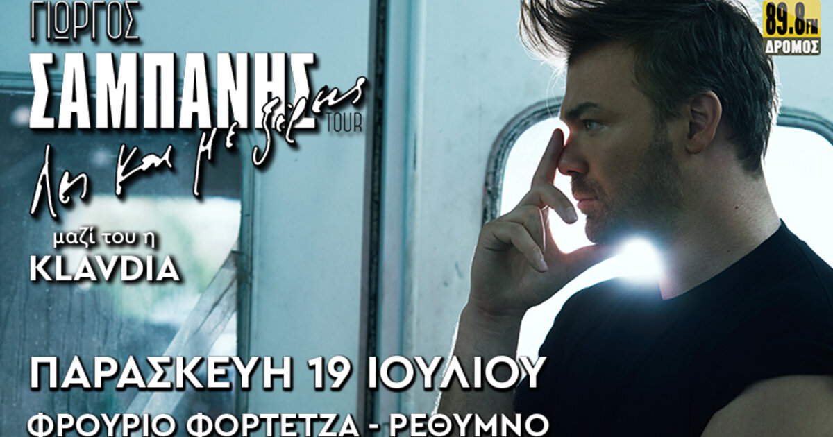 Ο Γιώργος Σαμπάνης δίνει καλοκαιρινό ραντεβού με το κοινό του Ρεθύμνου, στο Φρούριο Φορτέτζα, την Παρασκευή 19 Ιουλίου.