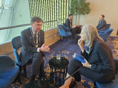Όπως σημείωσε, οι ίδιες οι Περιφέρειες – με χαρακτηριστικό παράδειγμα την Περιφέρεια Κρήτης – αποτελούν βασικούς παράγοντες αυτής της μετάβασης, ενώ πλατφόρμες συνεργασίας όπως η CPMR συμβάλλουν ουσιαστικά ώστε οι περιφερειακές ανάγκες και προοπτικές να εκπροσωπούνται αποτελεσματικά στον ευρωπαϊκό διάλογο πολιτικής.