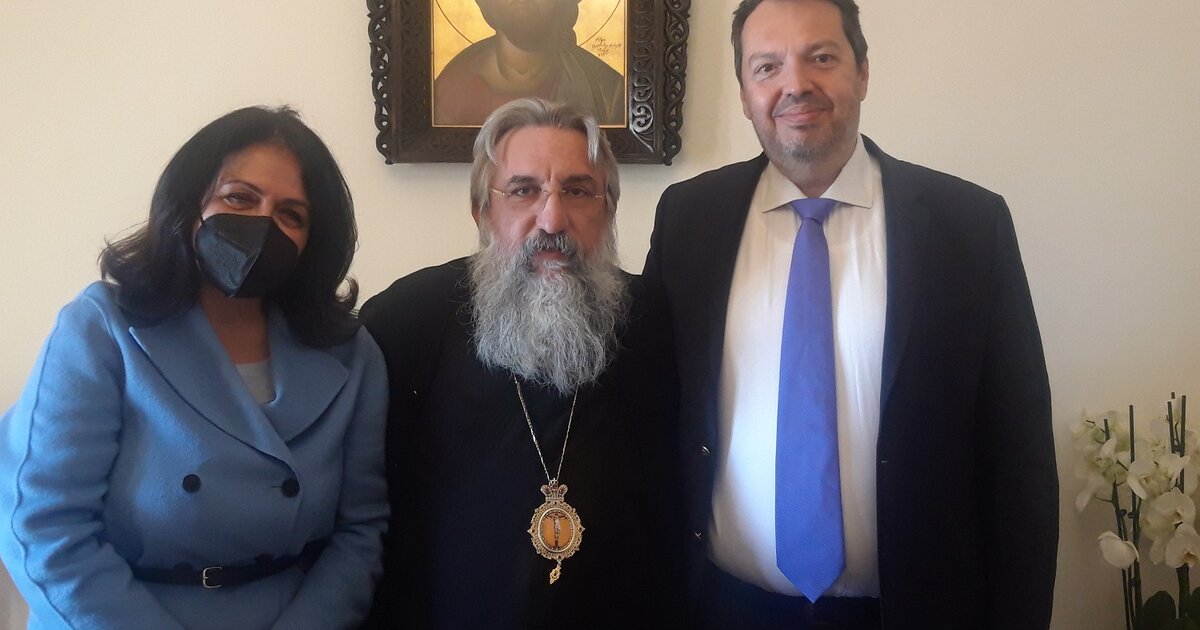 Εθιμοτυπική επίσκεψη στον νέο Αρχιεπίσκοπο Κρήτης κ Ευγένιο, πραγματοποίησε το πρωί της Τρίτης 29 Μαρτίου 2022, ο Διευθύνων Σύμβουλος του ΟΛΗ κ. Μηνάς Παπαδάκης συνοδευόμενος από το μέλος του Δ.Σ. Μαρία Καλλέργη και την Ειδική Σύμβουλο Ελένη Τσαντηράκη.
