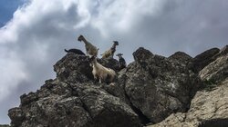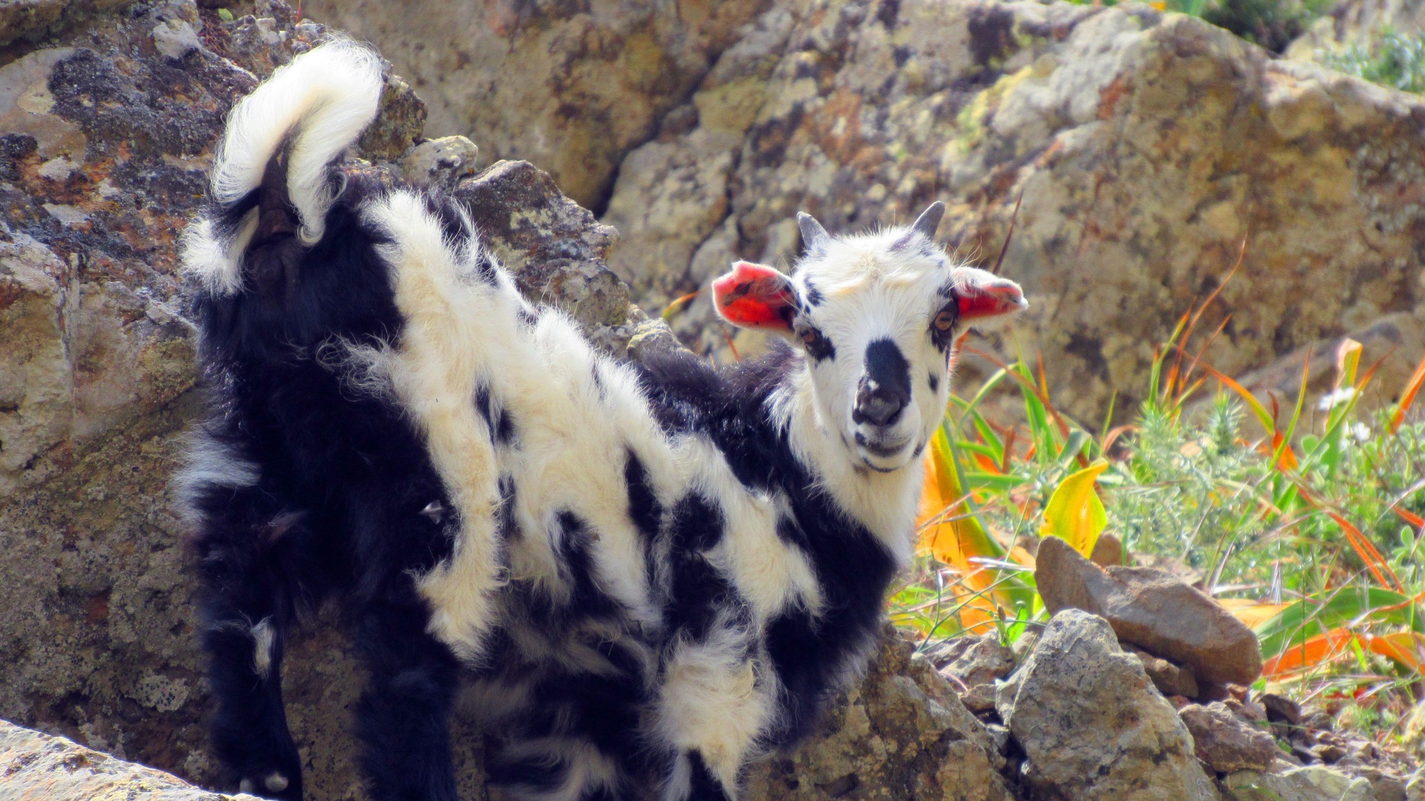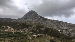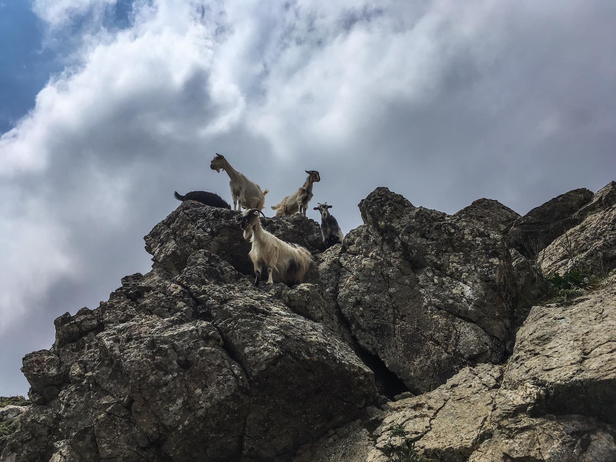 Παίρνουμε πορεία ανατολική από χωματόδρομο και στη συνέχεια από σηματοδοτημένο μονοπάτι. Το τοπίο είναι άγριο και πετρώδες. Παντού γύρω μας ακούμε τα κουδούνια των αιγοπροβάτων. Στο δρόμο συναντάμε κι ένα λαγό, που γλύτωσε απ’ τους κυνηγούς. Εκείνα που μας λείπουν είναι τα σπάνια είδη αρπακτικών πουλιών, που έχουμε ακούσει ότι ενδημούν στην περιοχή. Χλωρίδα ελάχιστη -όλα τα τρώνε τα κατσίκια- μόνο πληθώρα πανέμορφων ενδημικών κίτρινων κρίνων (arum creticum), που σαν δηλητηριώδες είδος, δεν είναι βρώσιμο.