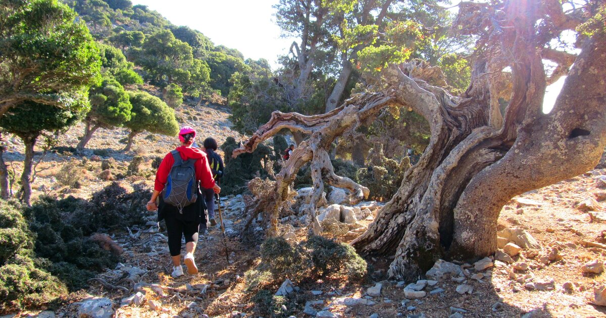 Επιστρέψαμε κατόπιν, για να μπούμε σε μονοπάτι αρκετά καλά σηματοδοτημένο με αχνά σημάδια, τα οποία όμως χάνονται σε αρκετά σημεία και θέλει προσοχή. Περνάμε μέσα από το μοναδικής αξίας κι ομορφιάς κυπαρισσόδασος της περιοχής (το κυπαρισσόδασος του Καθαρού Κριτσάς είναι σημαντικό μνημείο της φύσης, καθώς είναι το μοναδικό της ανατολικής Κρήτης, ενώ υπάρχουν μερικά ακόμα στα Λευκά Όρη. Κάποτε όλο το νησί ήταν καλυμμένο με αυτό. Οφείλουμε να το προστατέψουμε!).
